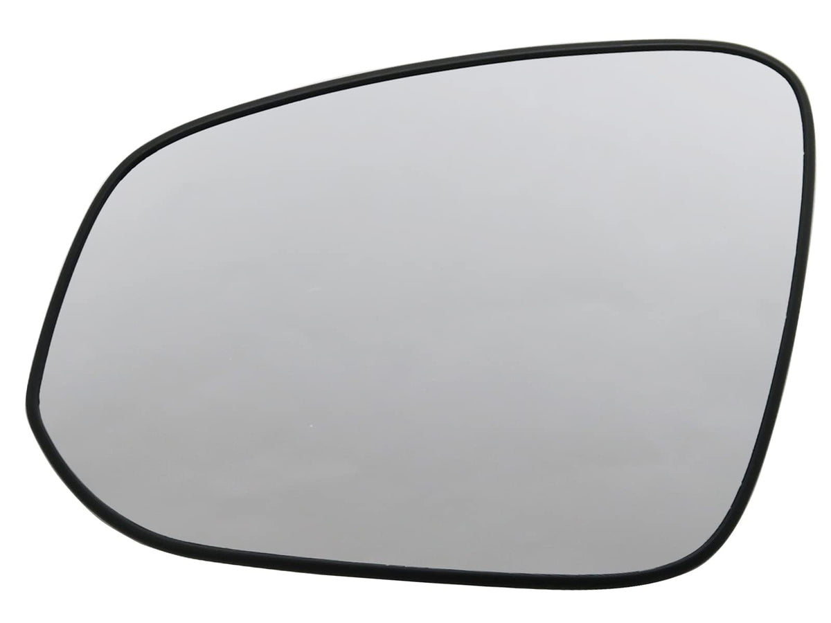 Q: What features does this mirror glass offer?A: This mirror glass features power adjustment, is non-heated, and comes as a flat one-piece design without integrated spotter glass. It is specifically for the driver’s left side.