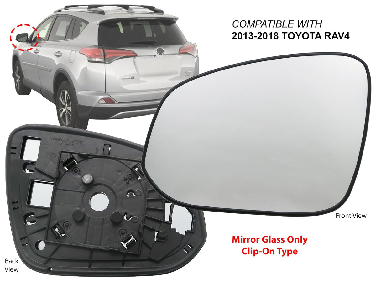 Item Description: Aftermarket Replacement Of Exterior Rear View Mirror Glass With Backing Plate Driver Left Lh Side Flat Mirror; Power Adjustment On Mirror Glass Without Heated / Defrost / Defogger Function Included 1 Piece Glass Model Without Blind Spot Detection Included No Hardware Included Built To Strict Quality Control Standards Made In Taiwan Fits Oem Part Number: 879610R080 , 87961-0R080 Fits Partslink Number: To1324121 Installation Instructions Is Included Easy Installation. Direct Replacement! Fits Model And Year: 2018 2017 2016 2015 2014 2013 18 17 16 15 14 13 Rav4 Rav 4 ( Us Model / North America Built )