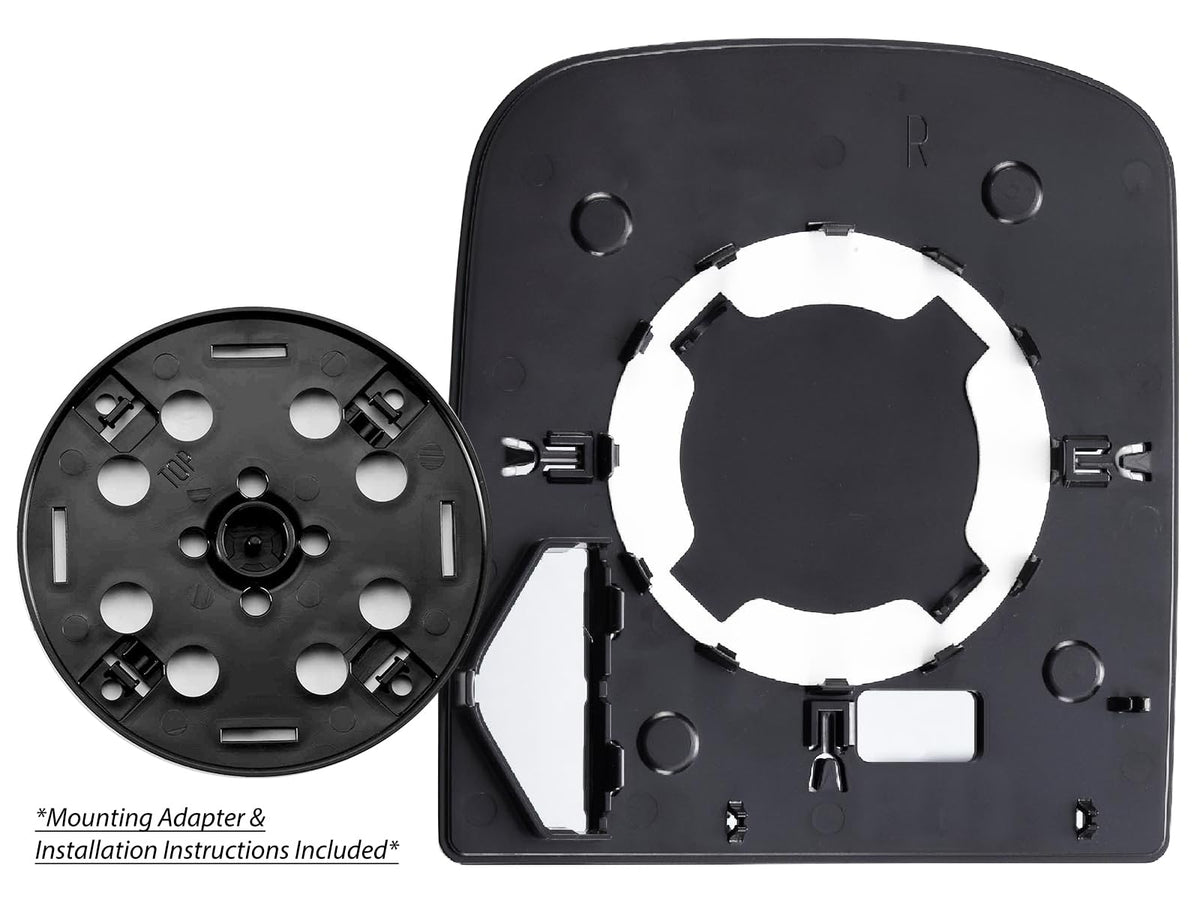 Q: What materials is the replacement mirror glass made from?A: The replacement mirror glass is made from high-quality glass, specifically designed to fit securely and effectively in your vehicle's tow mirror setup. It ensures clarity and durability for optimal visibility while towing.