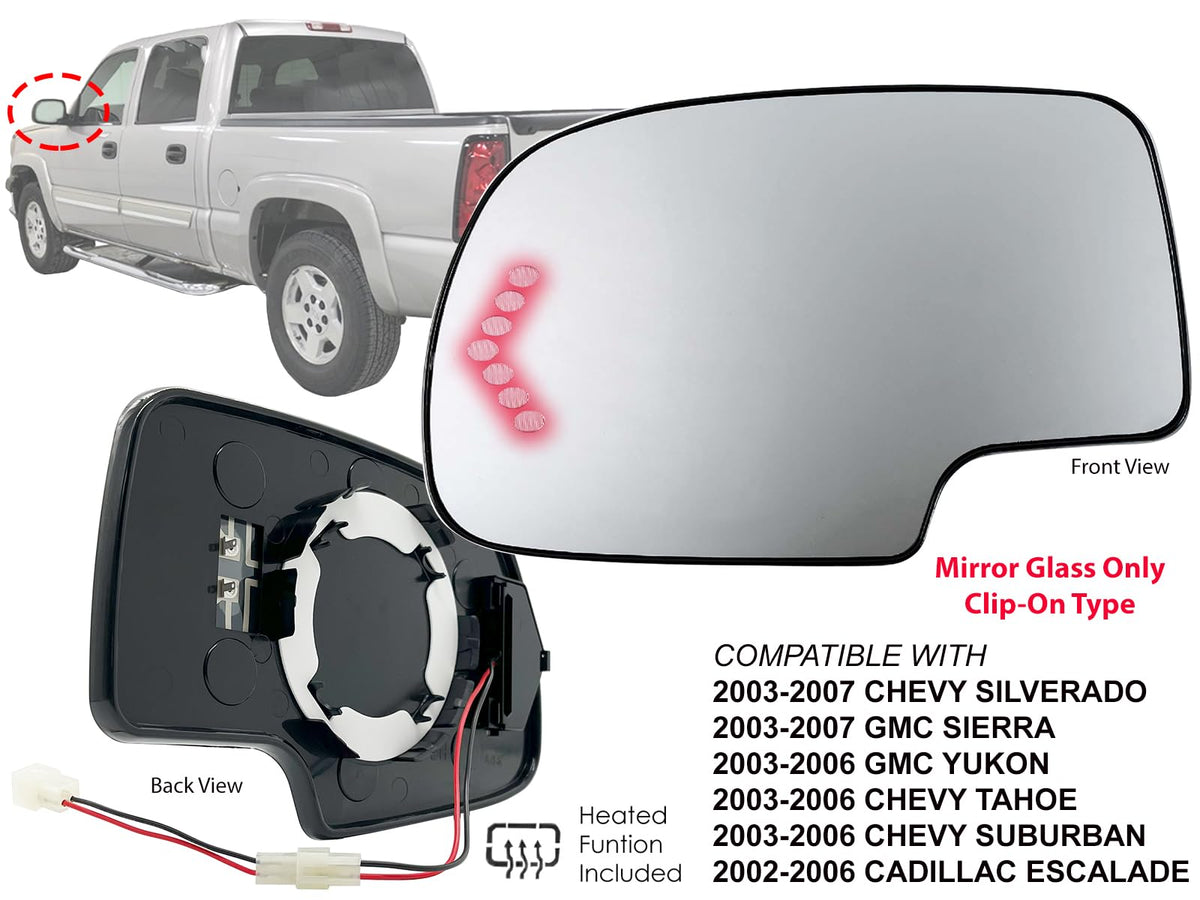 APA Replacement Mirror Glass for 2003-2006 TAHOE YUKON ESCALADE AVALANCHE SUBURBAN Power Heated with LED Signal Driver Left Side