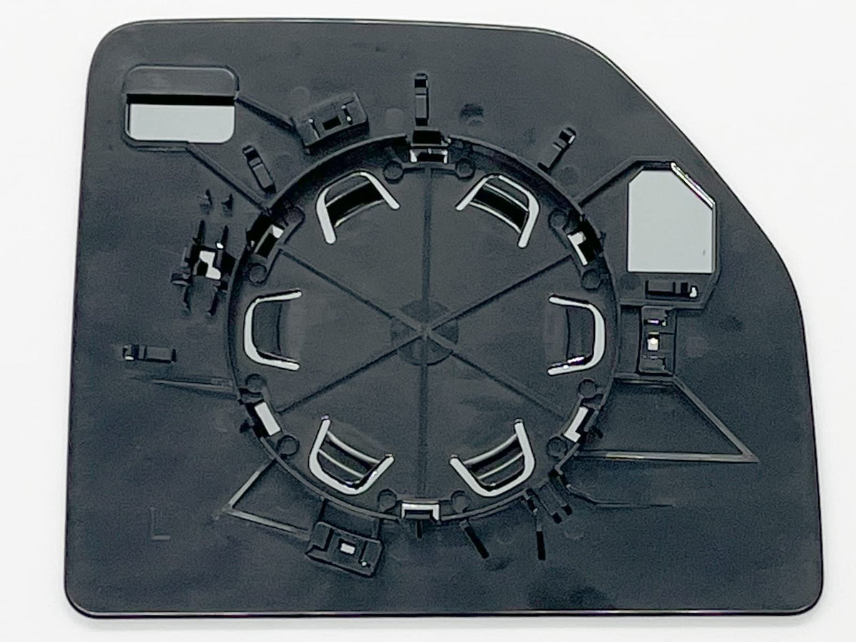 Q: What features does the upper driver side mirror glass offer?A: The upper driver side mirror glass features a flat design, is non-heated, and includes mounting clips for easy installation without the need for adhesive.