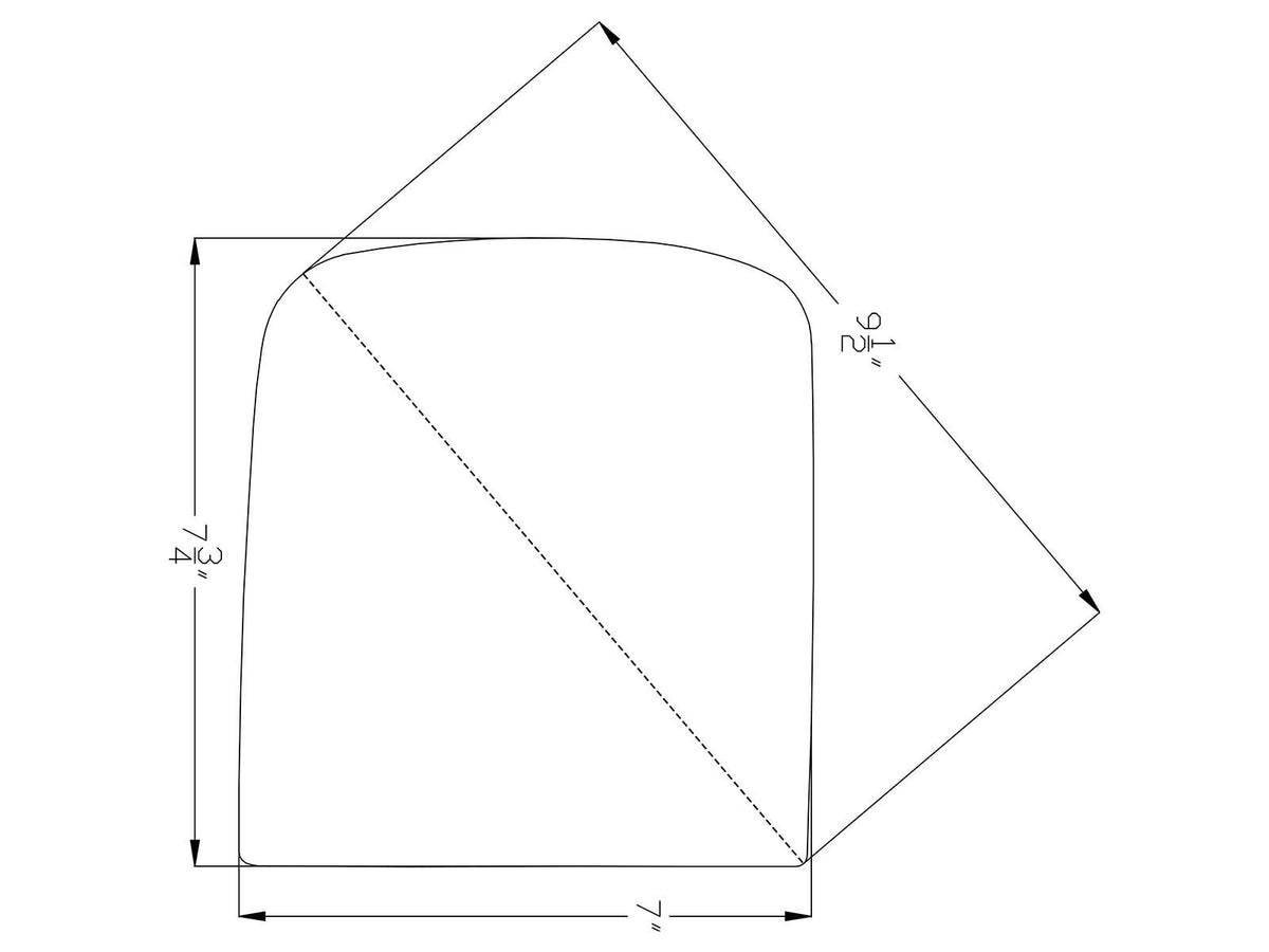 Q: What are the dimensions of the mirror glass?A: The dimensions of the mirror glass are 7 3/4 inches by 7 inches, with a diagonal measurement of 9 1/2 inches. It's essential to measure your original mirror glass to confirm compatibility before replacement.
