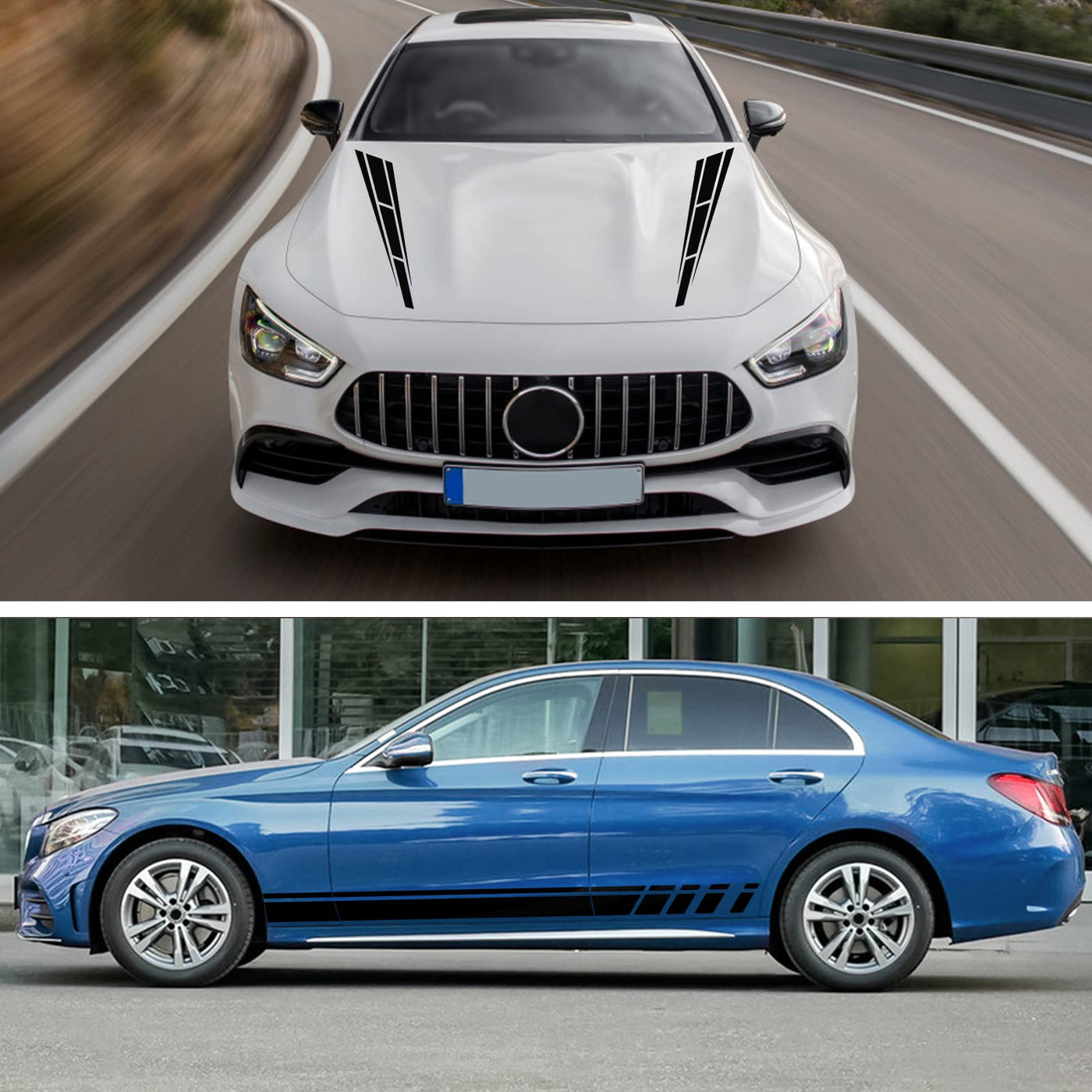 Bilisin Car Hood Stripe Vinyl Decals, 6Pcs Car Sport Racing Graphics Body Side And Rear View Mirror Accessories Decals Universal For All Cars Suv Trunk