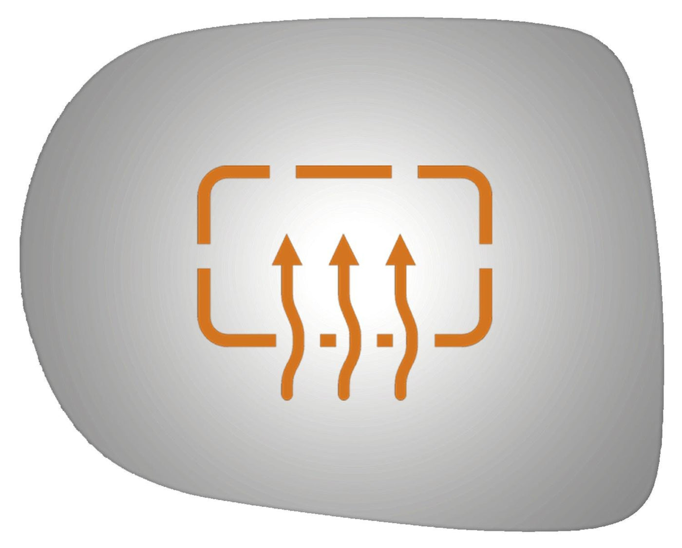 These mirrors are heated when your defrost function is turned on. They may or may not have a heated icon. The presence of heat wires is a good indication that your mirror is heated. Burco mirrors with part suffix H come complete with a pre-applied heat grid.