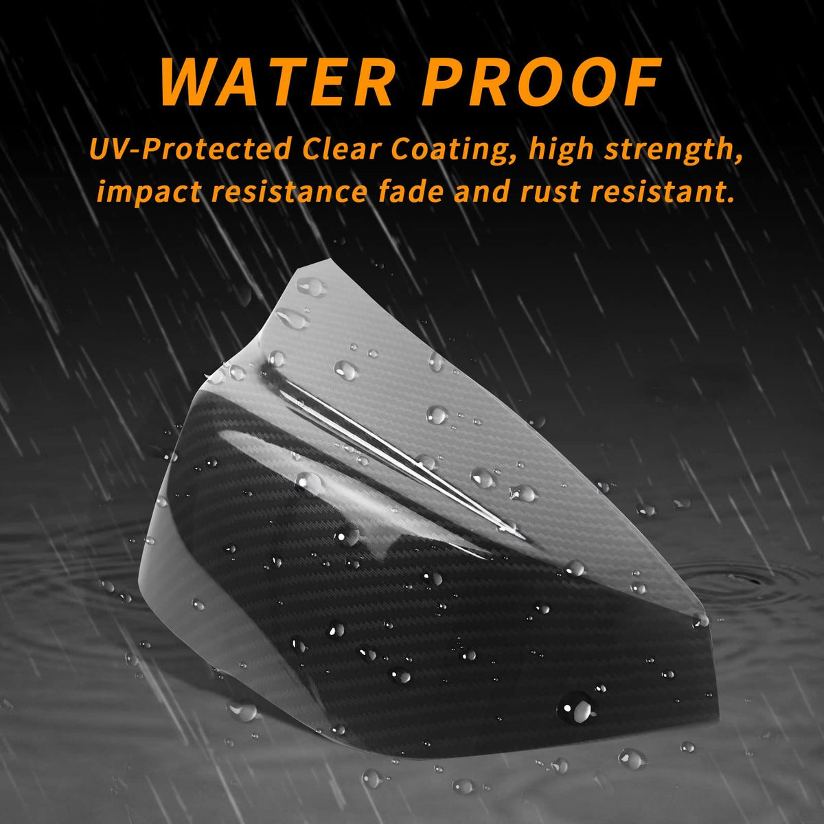 Q: What material are the mirror covers made from?A: The mirror covers are made from high-quality ABS plastic, which is durable and lightweight. They feature a polished surface with a carbon fiber look, providing both aesthetics and protection for your rearview mirrors.