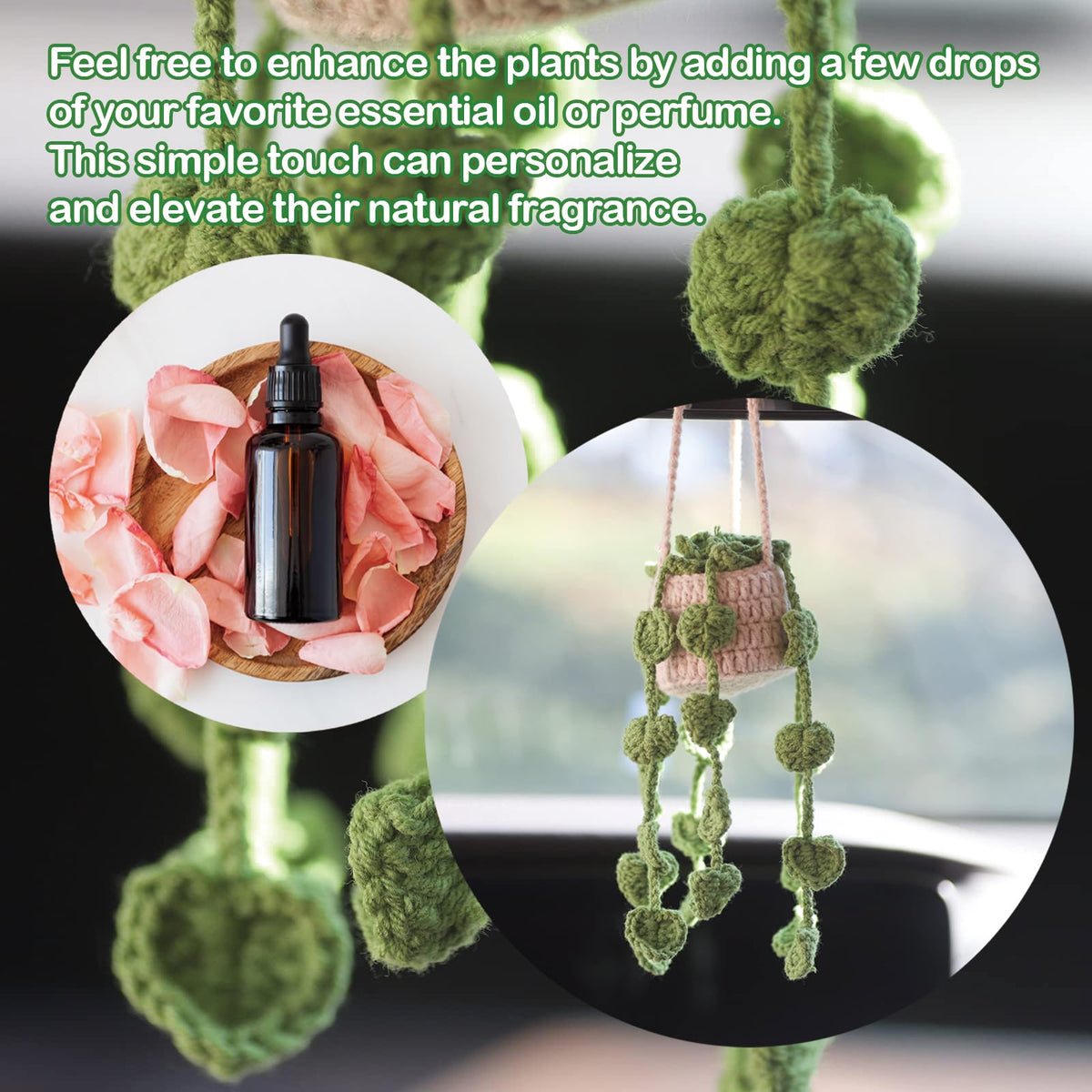 ?? [Aromatherapy on the Go]: Infuse your car with your favorite fragrances! Drip perfume or essential oil onto our plant car suspension accessory and watch as the scent gently permeates your vehicle, creating an ambiance of romance and elegance. ?? [Easy-to-Use & Adjustable]: Say goodbye to the hassle of self-threading! Our car mirror suspension accessory is a pre-assembled product. With its long and adaptable rope, you can conveniently adjust the length to suit your needs. Crafted from soft cotton thread, it safeguards against noise or damage to the glass, even upon impact. ?? [Gift with a Twist]: More than just a decorative piece for car rearview mirrors, this delightful plant accessory doubles as a thoughtful present for parents, relatives, and friends. It also makes for an ideal holiday gift! ?? [Specifications]: ?? Material: Cotton Linen ?? Applicable for: Both Male and Female ?? [A Variety of Styles]: Customize to your heart's content! Our collection boasts a myriad of styles to cater to your unique taste. The package includes: ?? White Basket + Green Fishing Style ?? White Basket + Pink Flowers ?? Light Yellow Basket + Small Daisies ?? Coffee Basket + Succulents ?? Khaki Flower Bed ?? Wisteria Flower ?? Green Maple Leaf ?? Orchid Blue ?? [Important Notes]: 1.As the product is manually woven, please allow for an error margin of 1-2cm. 2.Due to variations in monitor displays, the images may not reflect the actual color of the product. Please refer to the received item for the most accurate representation. 3.Embrace the fusion of function and beauty with our car mirror suspension accessory! It's more than a product; it's a lifestyle choice!