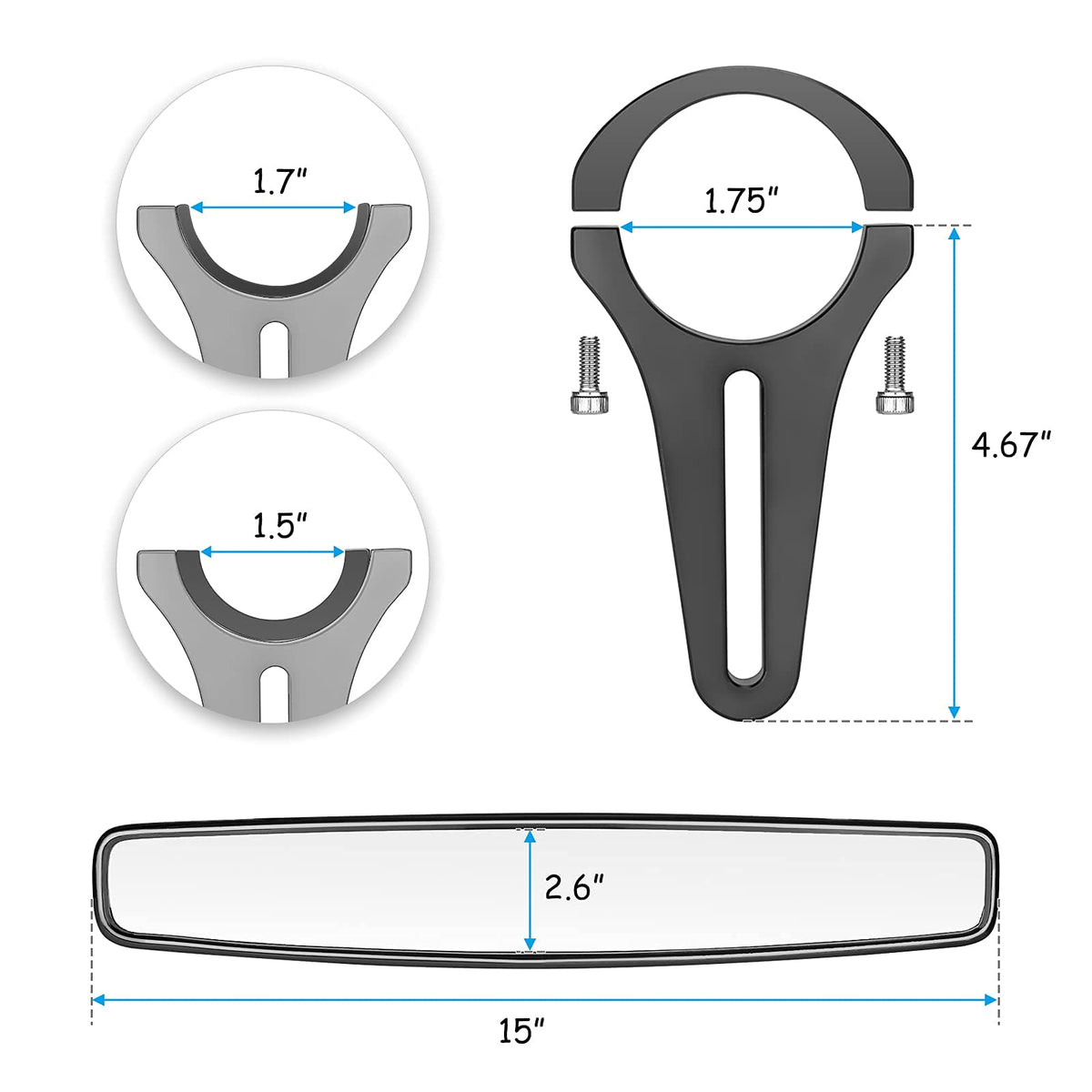 Dasen 15' Rear View Convex Mirror W/Adjustable Clamp Kit For 1.5''/1.75'' Roll Round Bar Compatible With Polaris Rzr 800 900 1000 Ranger Arctic Cat Wildcat Kawasaki Teryx Yamaha Wolverine
