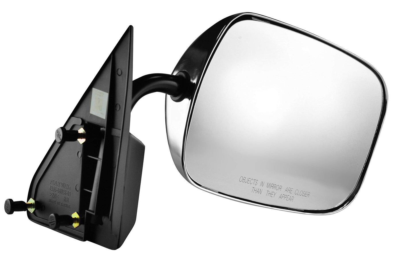 Q: What are the key features of this chrome mirror?A: This mirror features a chrome cover, operates manually, and folds manually, providing a stylish and functional option for your vehicle. It is specifically designed for passenger side installation and is compatible with various 80s and 90s Chevy and GMC models.