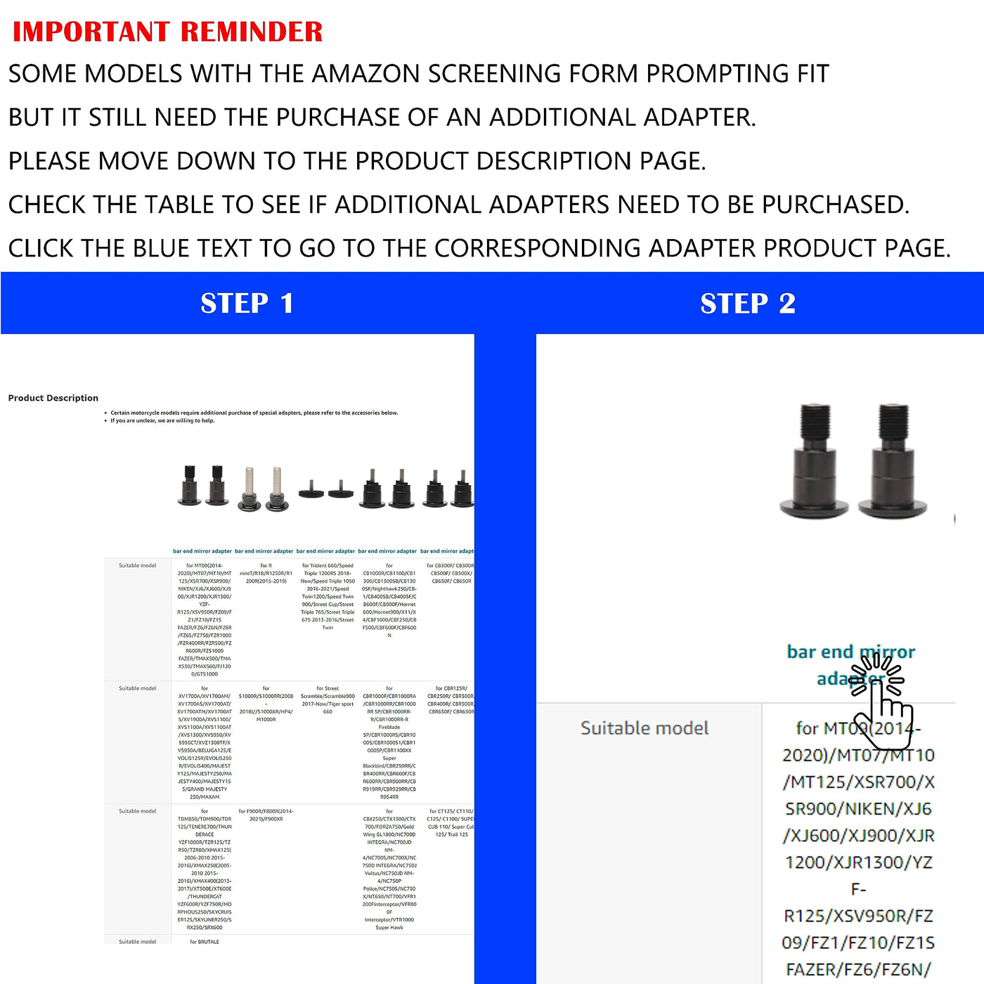 Please Watch Our Second Installation Photo , It'S Very Important For Installation And Select!! Some Models Require The Purchase Of Additional Adapters, Please Check Our Detailed Description. | Note : Please Kindly Try Your Best To Tighten Three Strews(Even Though The Screw Exceed Two Threads), Then The Mirror Stem Will Stay In The Right Way And Never Moved During Riding But Only Adjust The Mirrors To The Best Angles | If You Have Any Issue On The Installation Or Other Issues On The Mirrors, Please Do Not Hesitate To Contact Us.Tips: Use Blue Threadlocker To Keep The Product Away From Vibration Or Loose. | Blue Lens,Clarity Is Great , The Mirror Provides You A Wide View Behind You,Sturdy Construction - Cnc Machined Aluminum Alloy Body With Durable Black Coating, Built For Long Lasting | Package: 1 Pair Lenses Mirror(Left & Right). | Lens Curvature: R1200 | Lenses Have Anti-Glare Function