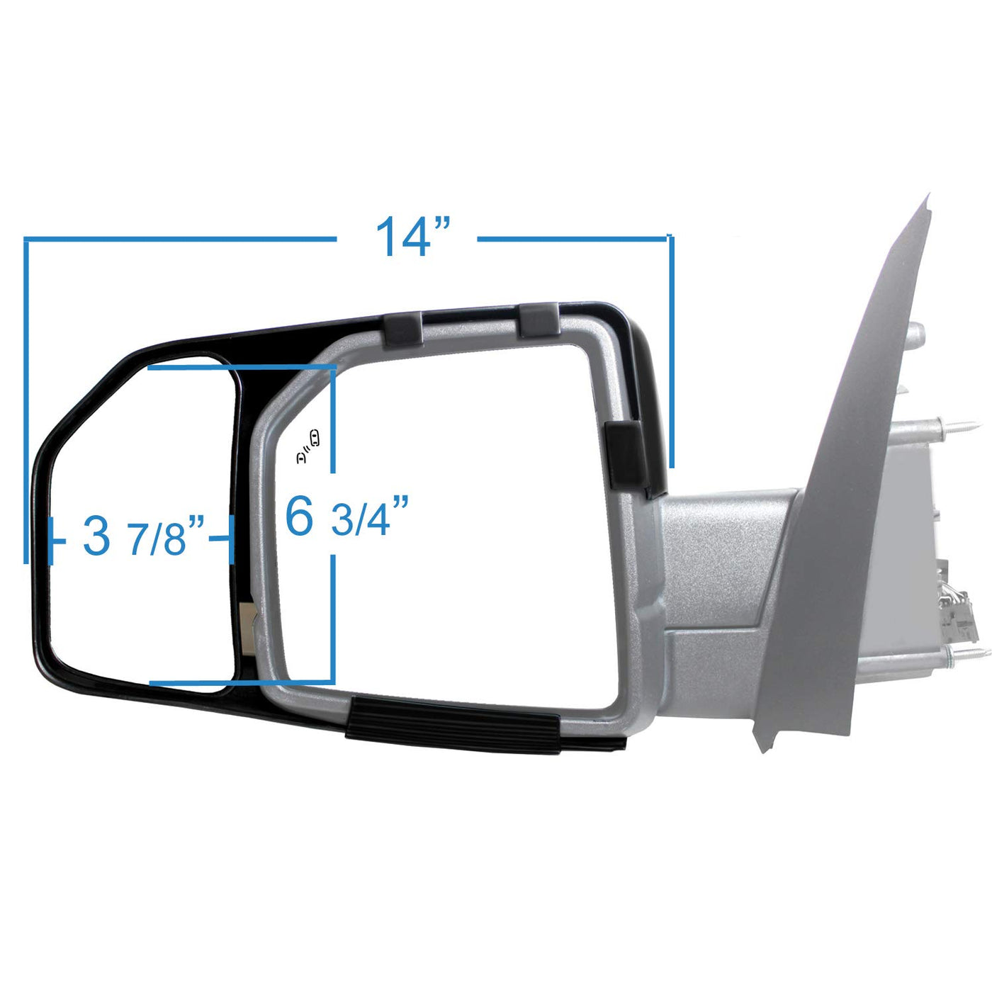 Each package includes one right hand tow mirror and one left hand tow mirror .Snaps on easily and is universal fit .Molded to fit Factory Mirrors.Use with 2015 to current Ford F-150 Pick-ups .