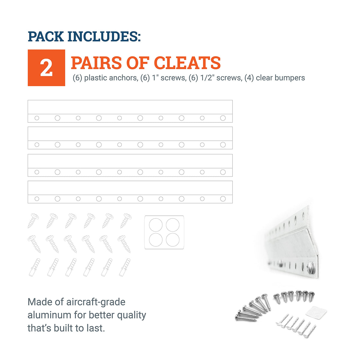 Cleat Hangers attach to the wall with the screws and plastic anchors supplied. This fastening method creates a solid, stable support for the frame. The 10' aluminum cleats have alternating large and small screw holes every inch to give you the opportunity to hit a stud and use the appropriate size screws.