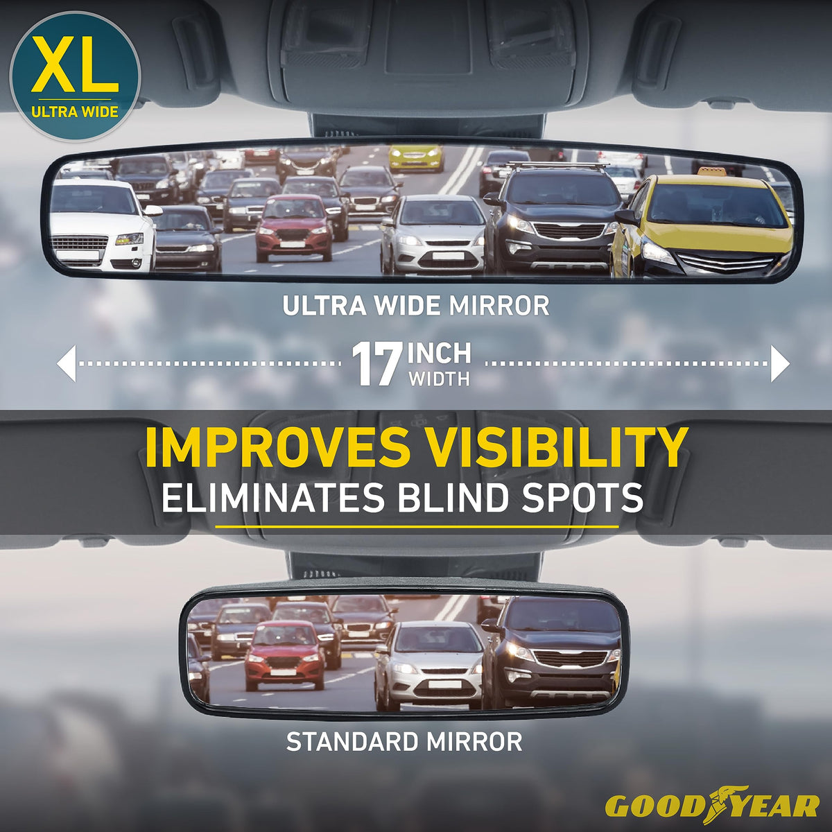 Goodyear [Super Large] 17” Panoramic Rear View Mirror For Cars/Suvs, [Promotes Safety] Helps With Parallel Parking, Fits All Vehicles, Wide Angle Backseat Passenger Viewer, Extra Wide Size