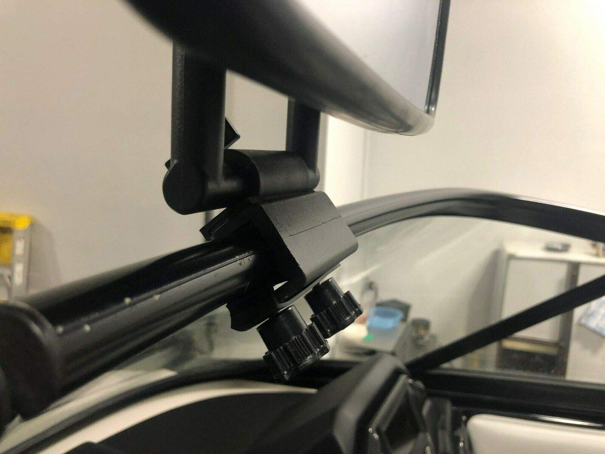 Q: How does the adjustable clamp work?A: The adjustable clamp allows you to attach the mirror in either a forward or backward position, ensuring optimal placement for your viewing needs. It also features adjustable turn knobs for a secure fit.