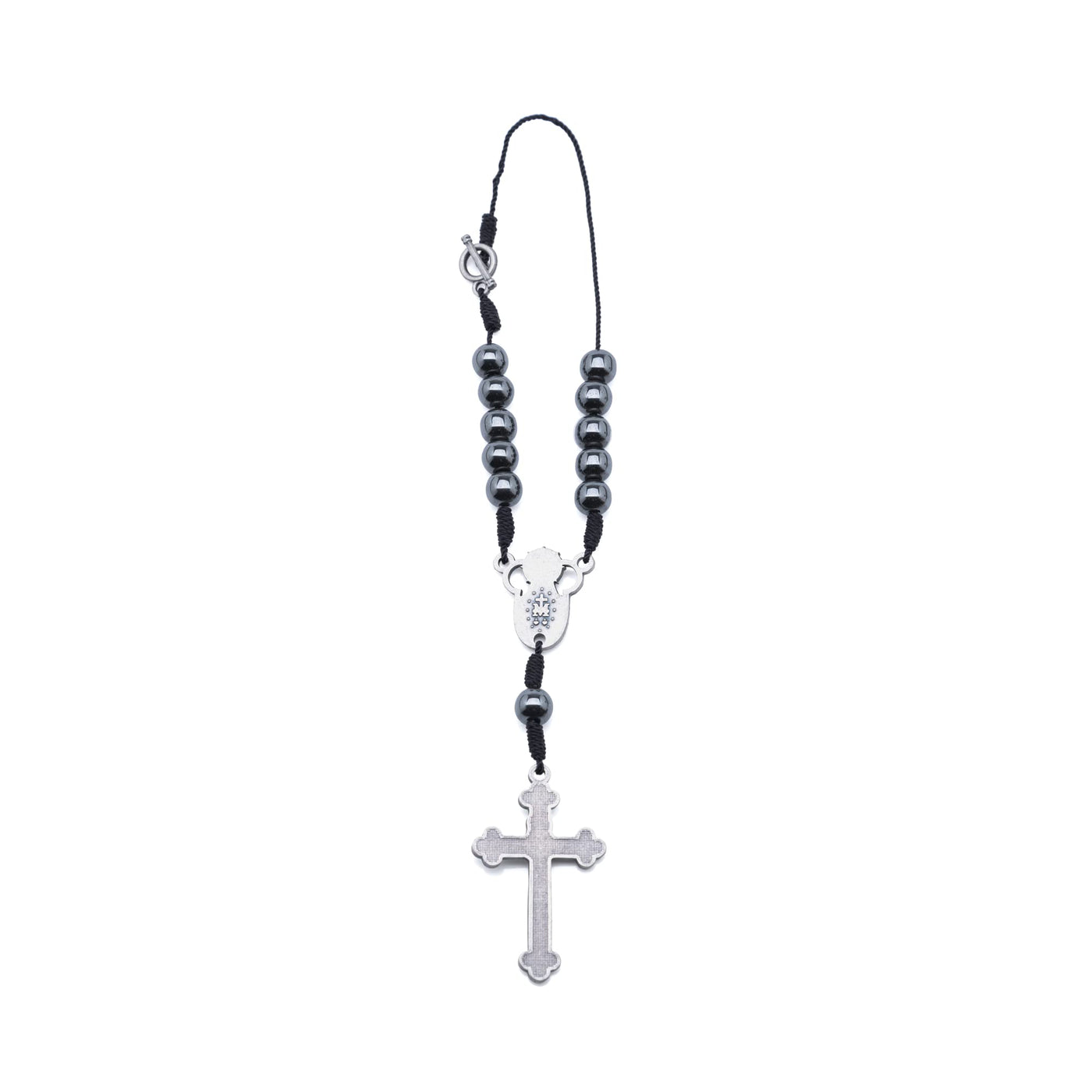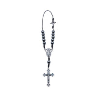 Intercession Hematite Car Rearview Mirror Rosary (St Benedict)