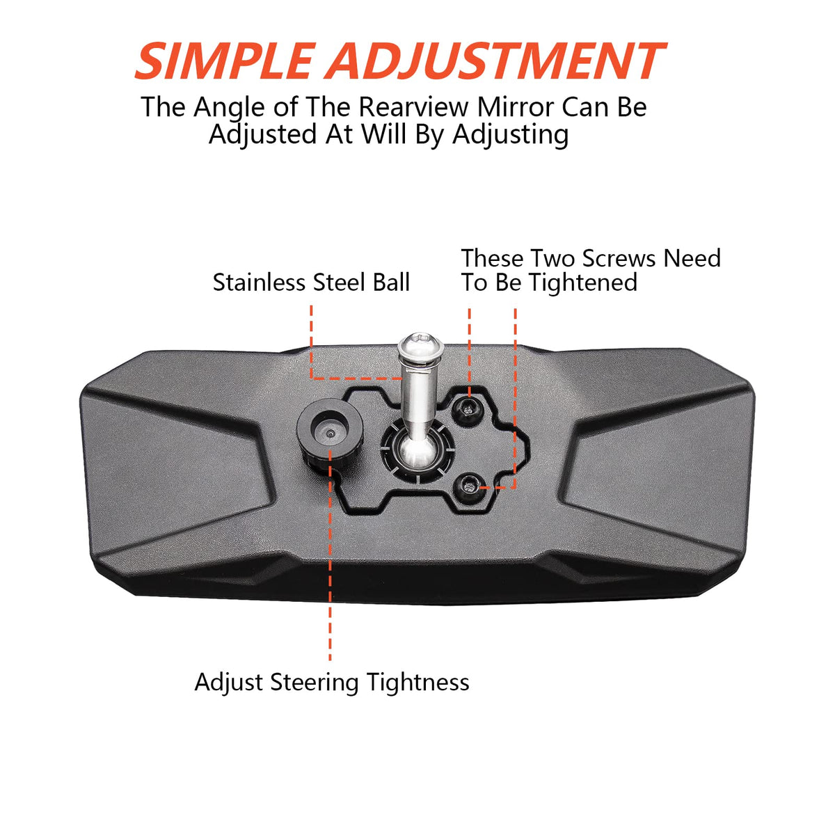 ?New Product?Well-Designed 2022 New Utv Center Rearview Mirror, Suitable For Almost All Utv Models, You Can Even Install It On A Square Roll Cage | ?New Structure?The Material Of The Cable Tie Is Special Steel, It Is Not Easy To Be Broken And Damaged, And There Is Rubber Attached To The Surface, Which Makes The Installation More Stable | ?Wider Applicability?This Utv Mirror Is Compatible With The Full Range Of Polaris Rzr, General,Can-Am Commander, Maverick X3, Kawasaki Mule, Kawasaki Teryx, Honda Pioneer, Talon, Sxs, Yamaha Rhino Yxz,As Well As Some Retrofit Roll Cages | ?Good Quality?The Aluminum Alloy Shell Is Very Strong And Textured, The Convex Mirror Has A Wider Field Of Vision And Is Very Clear. In Addition, It Is Made Of Special Explosion-Proof Glass. | ?Good Service?We Listen Carefully To Customers' Voices And Needs, If You Have Any Questions Or Comments, Please Contact Us , We Will Try Our Best To Help You Solve It