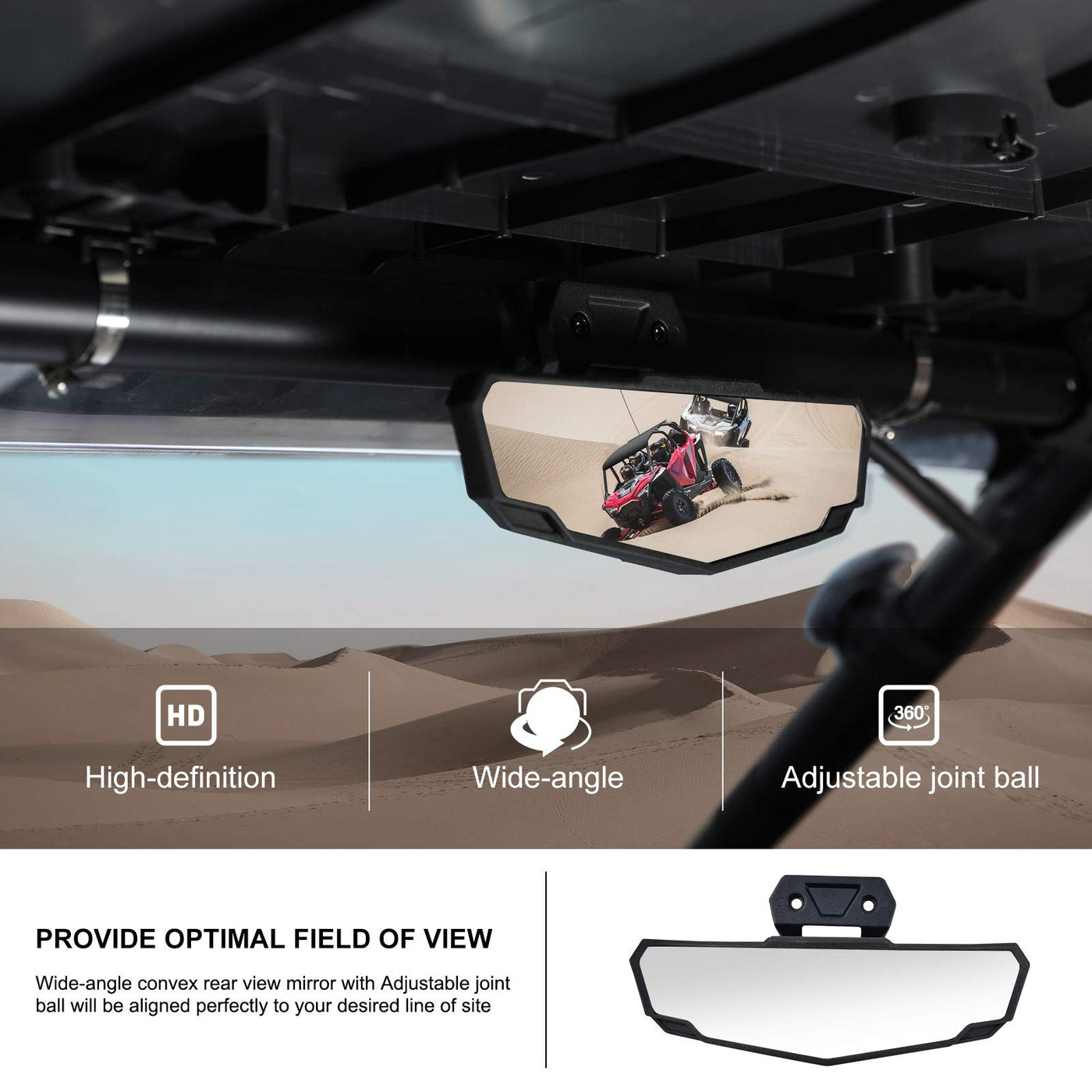 Kiwi Master Rear View Mirror Compatible With 2024 Polaris Rzr Xp 1000, 2020-2024 Rzr Pro Xp, Pro R, Turbo R, Rzr Trail/S Accessories Center Rearview Racing Convex Mirrors # 2883763