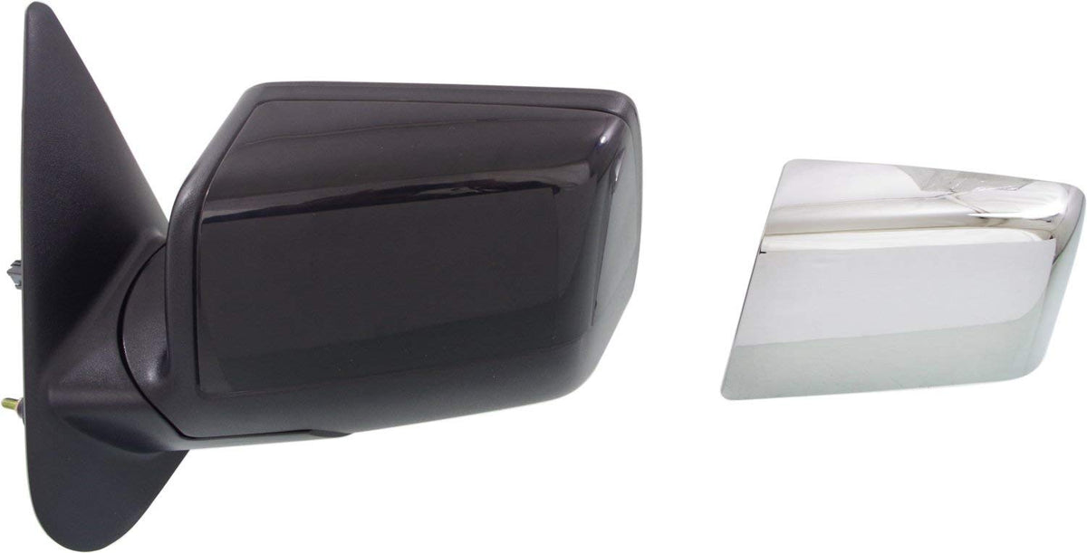 Q: What are the features of the Kool Vue Driver Side Mirror?A: The Kool Vue Driver Side Mirror features a manual folding design, power glass, and comes with one chrome cap and one paintable cap for customization.