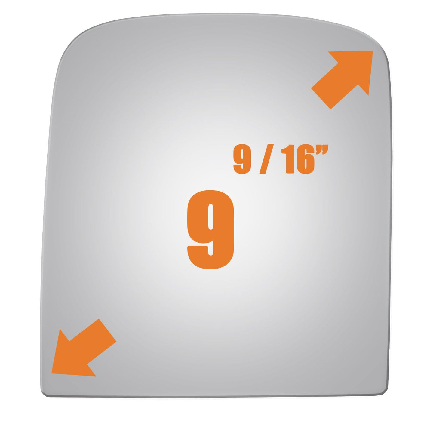 Q: How do I measure the mirror glass to ensure a proper fit?A: To ensure a proper fit, you should measure the mirror glass diagonally. This mirror glass measures 9 9/16 inches diagonally from the top corner to the opposite bottom corner, which can also be verified in the product photos.