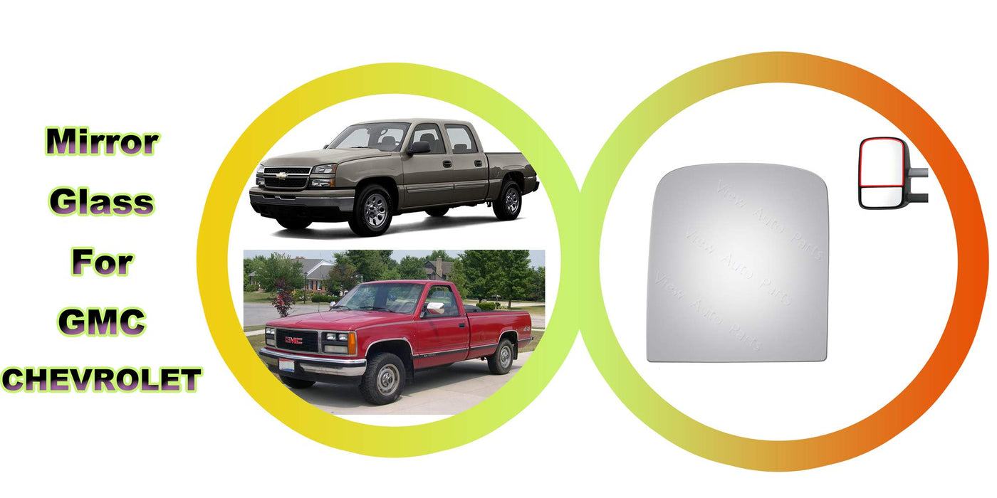 Q: What vehicles is the mirror glass compatible with?A: This replacement mirror glass is designed to fit a variety of Chevy and GMC models, including 1988-1998 Chevy/GMC C10 C1500/2500/3500, 1990-2000 Chevy Blazer, 1995-2014 Chevy Tahoe, 1999-2014 Chevy Silverado, 1999-2014 GMC Sierra, 1992-2014 GMC Yukon, 2002-2013 Chevy Avalanche, and 2002-2014 Cadillac Escalade.