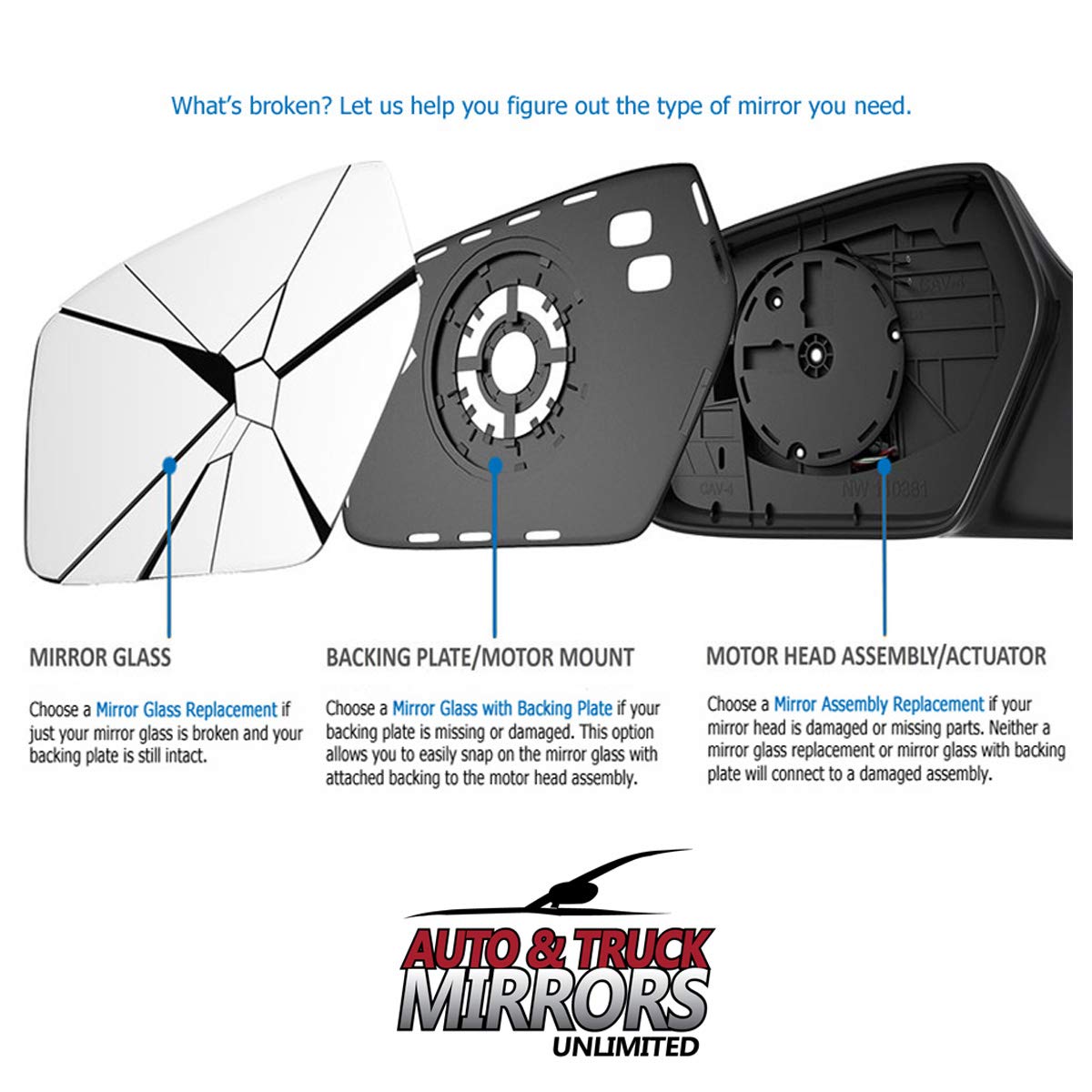 IMPORTANT NOTE: Your vehicle may have several different mirror styles. Some styles that are offered are power, manual, heated, non-heated, with turn signal, auto dimming and also different shapes. Please make sure you confirm the shape and dimensions of your factory glass before you purchase.
