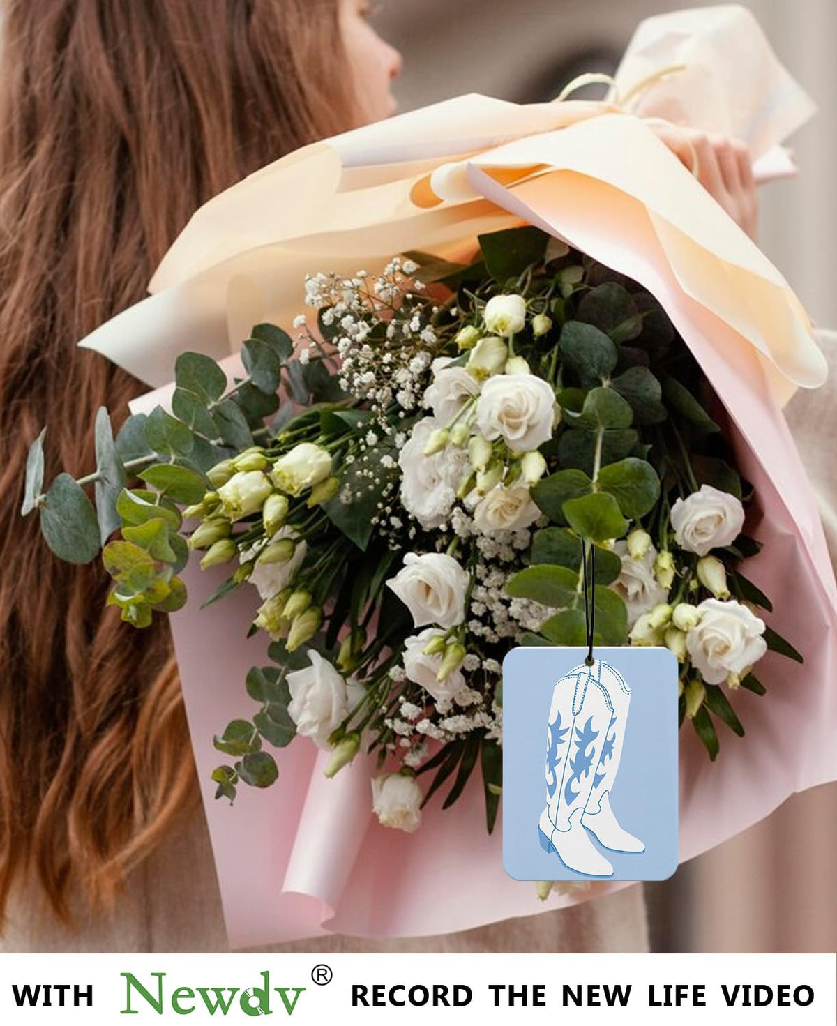 Newdv Western Car Air Freshener,Blue Car Accessories Hanging 3Pcs,Cowgirls Car Mirror Decor Hanging,Preppy Car Scents Air Freshe