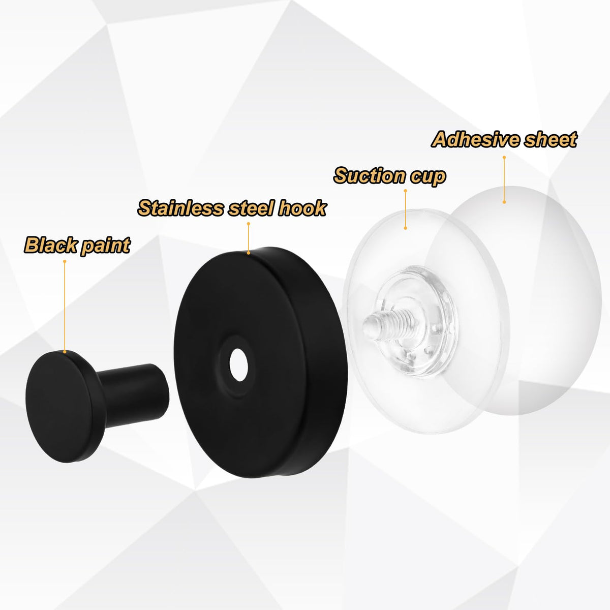 Peutier 2Pcs Suction Cup Hooks, Premium Stainless Steel Suction Cup Hooks Shower Hooks Suction Cup Bathroom Towel Coat Hook Suitable For Glass Mirror Smooth Surface(Black)