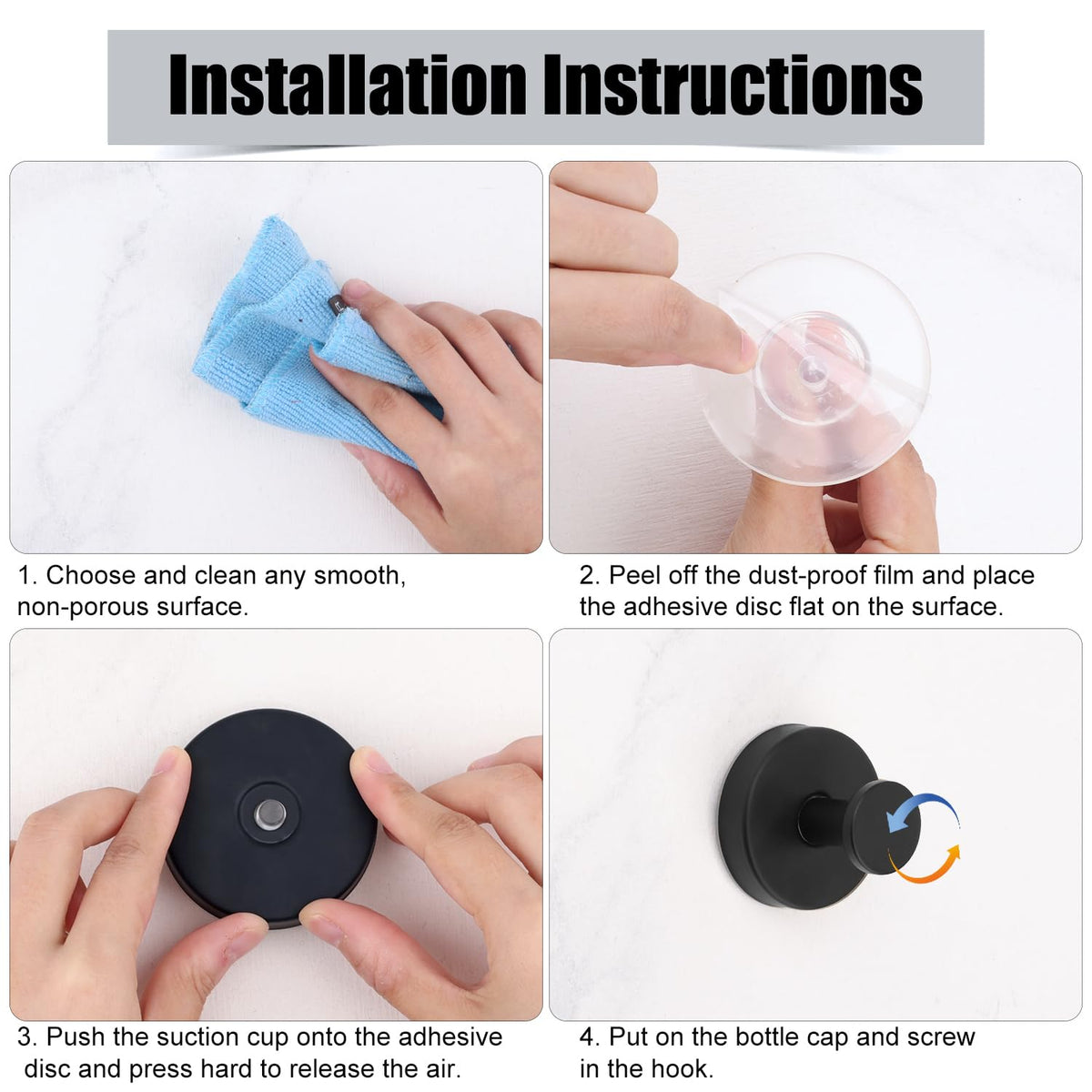 Q: How do I install the suction cup hooks?A: Installation is simple and quick. Clean the surface where you want to attach the hooks, press the suction cup firmly against the surface, and ensure there are no air bubbles. You can complete the installation in just a few minutes by following the provided instructions.