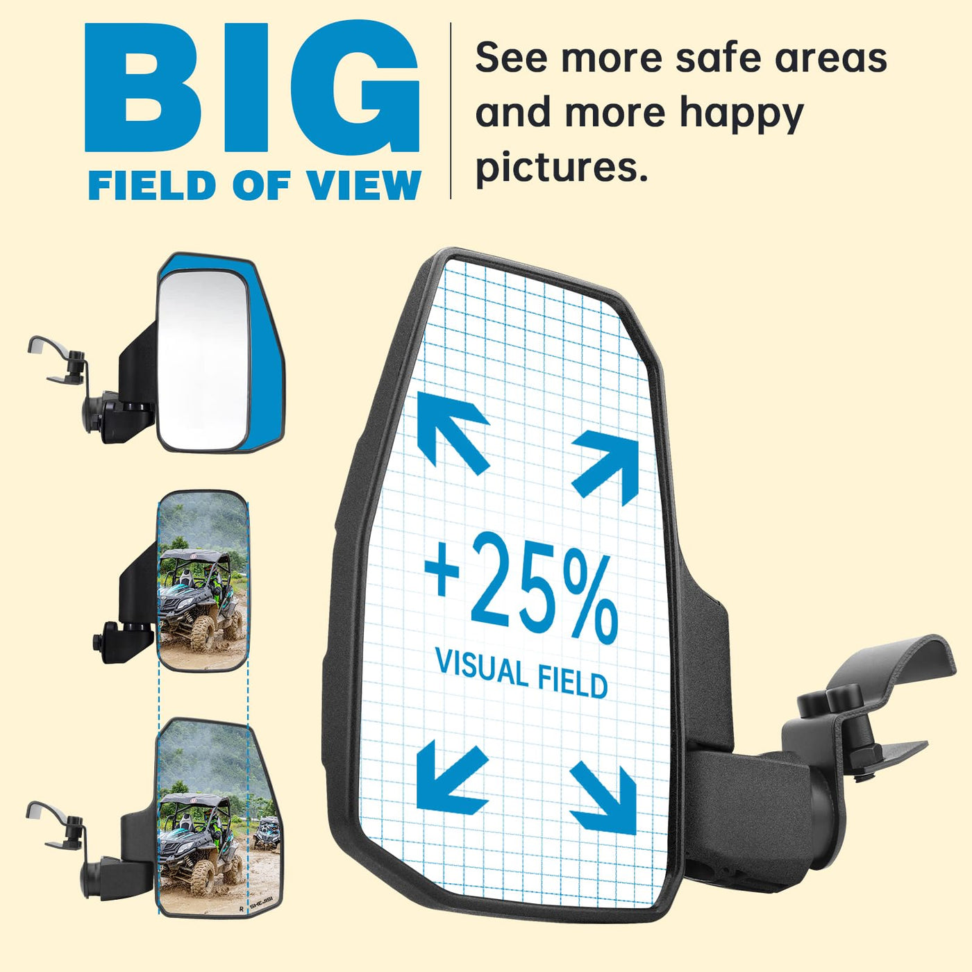 Q: Are these mirrors suitable for UTVs with closed doors or cylindrical anti-roll bars?A: No, these mirrors are not suitable for UTV models with fully closed doors or those that have cylindrical anti-roll bars. Please ensure your UTV meets the compatibility requirements before purchasing.
