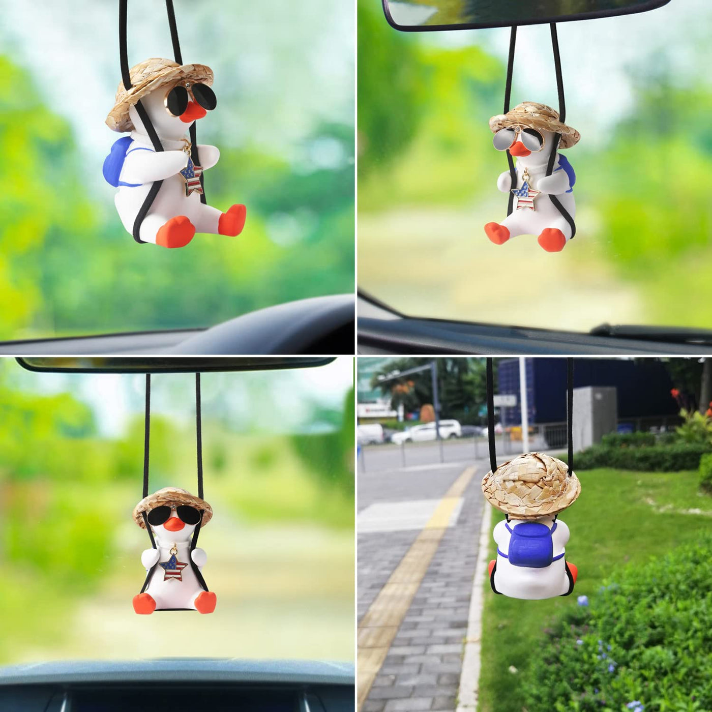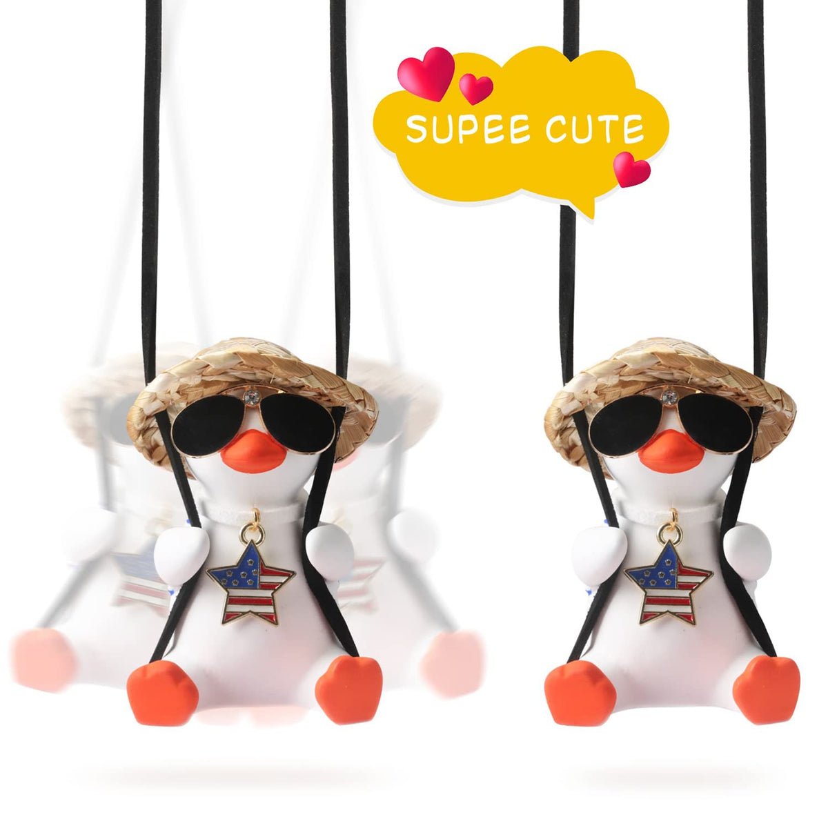Rear View Mirror Hanging Accessories Cute Swinging Duck Car Truck Hanging Stuff For Men Women Teens Rearview Mirror Charms Vehicle Essentials Interior Accessories Funny White Elephant Gifts For Adults