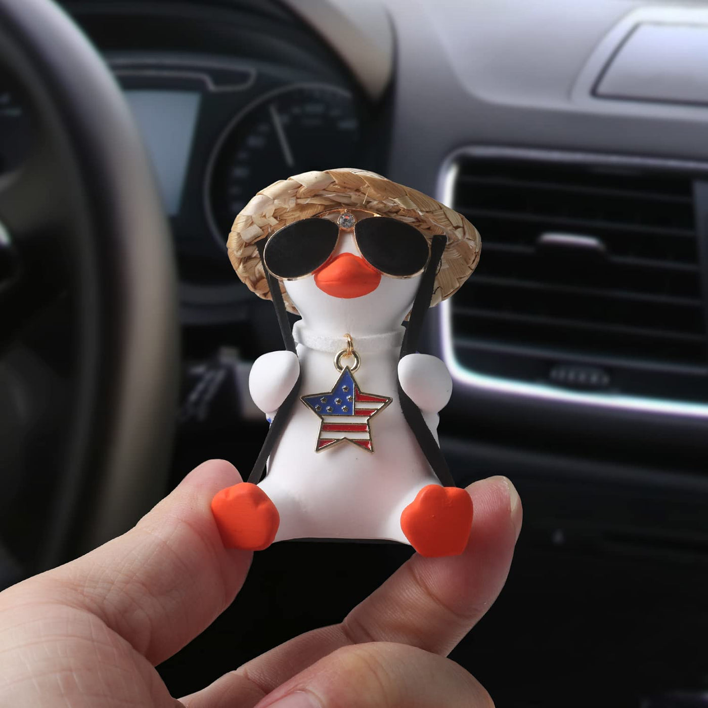 Q: Can this duck accessory be used in any type of vehicle?A: Yes, the duck car decoration is designed to be suitable for most vehicles and can be hung on the rearview mirror, window, door, or even used as part of home or office decor.