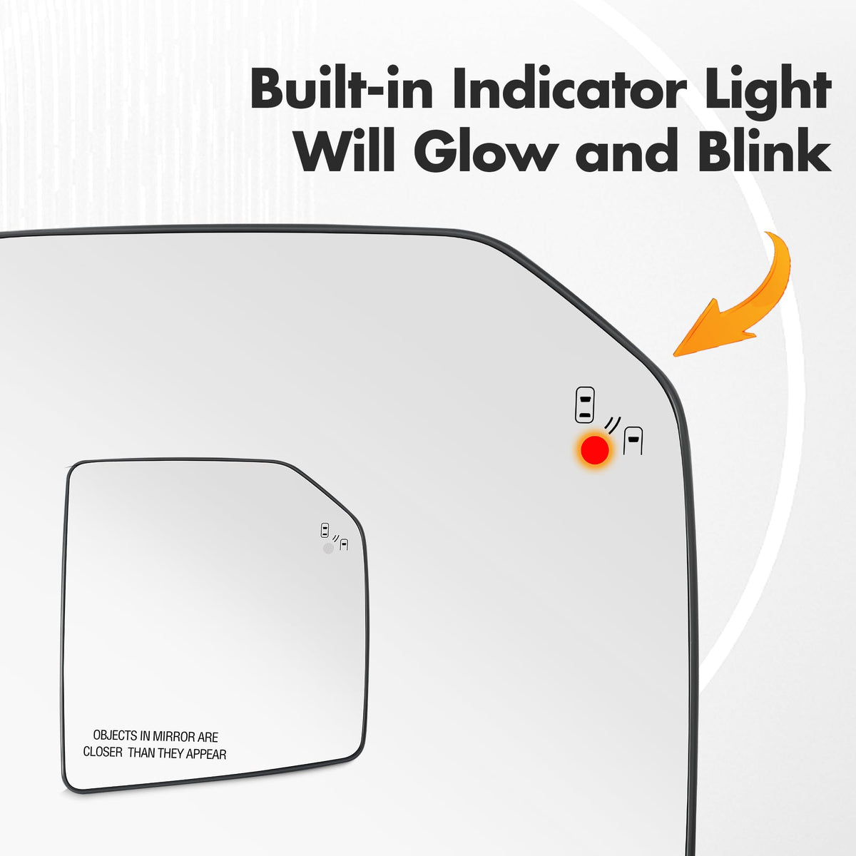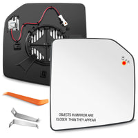 Q: Does this mirror glass have heating and blind spot detection features?A: Yes, this replacement mirror glass features power heating for defogging and defrosting, as well as a built-in LED light for the Blind Spot Detection system. Ensure your Ford F150 Raptor is equipped with the BSD function for the light to operate.