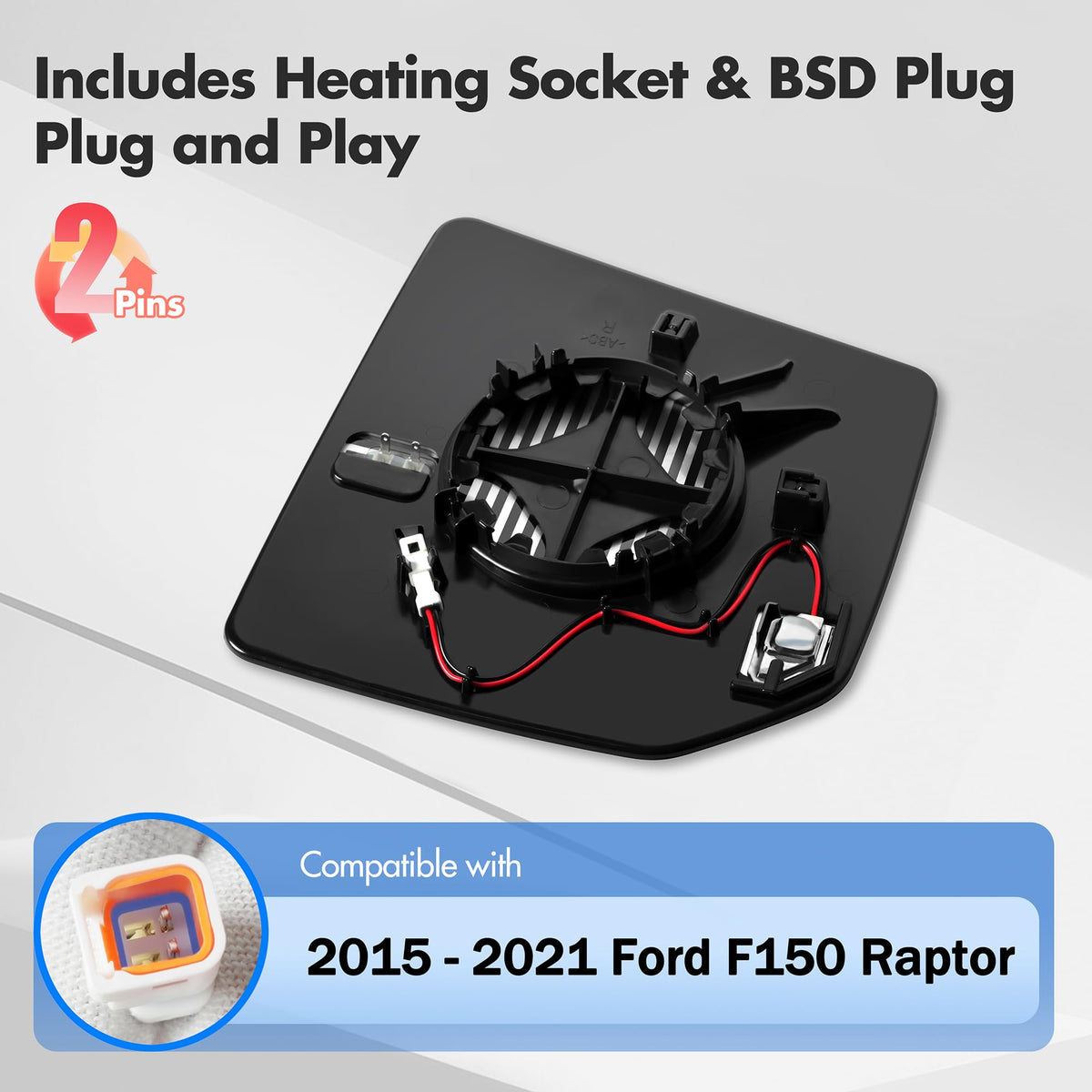 Please Check The Fit Of Your Ford F150 Mirror Before Buying: Oem:Fl3Z-17K707-D Carefully Observe The Plug On The Back Plate Of The Ford F150 Mirrors, There Should Be 2 Plugs: 1 Fixed Socket For Heating; 1X 2-Pin Plug For Blind Spot System With Extension Harness.