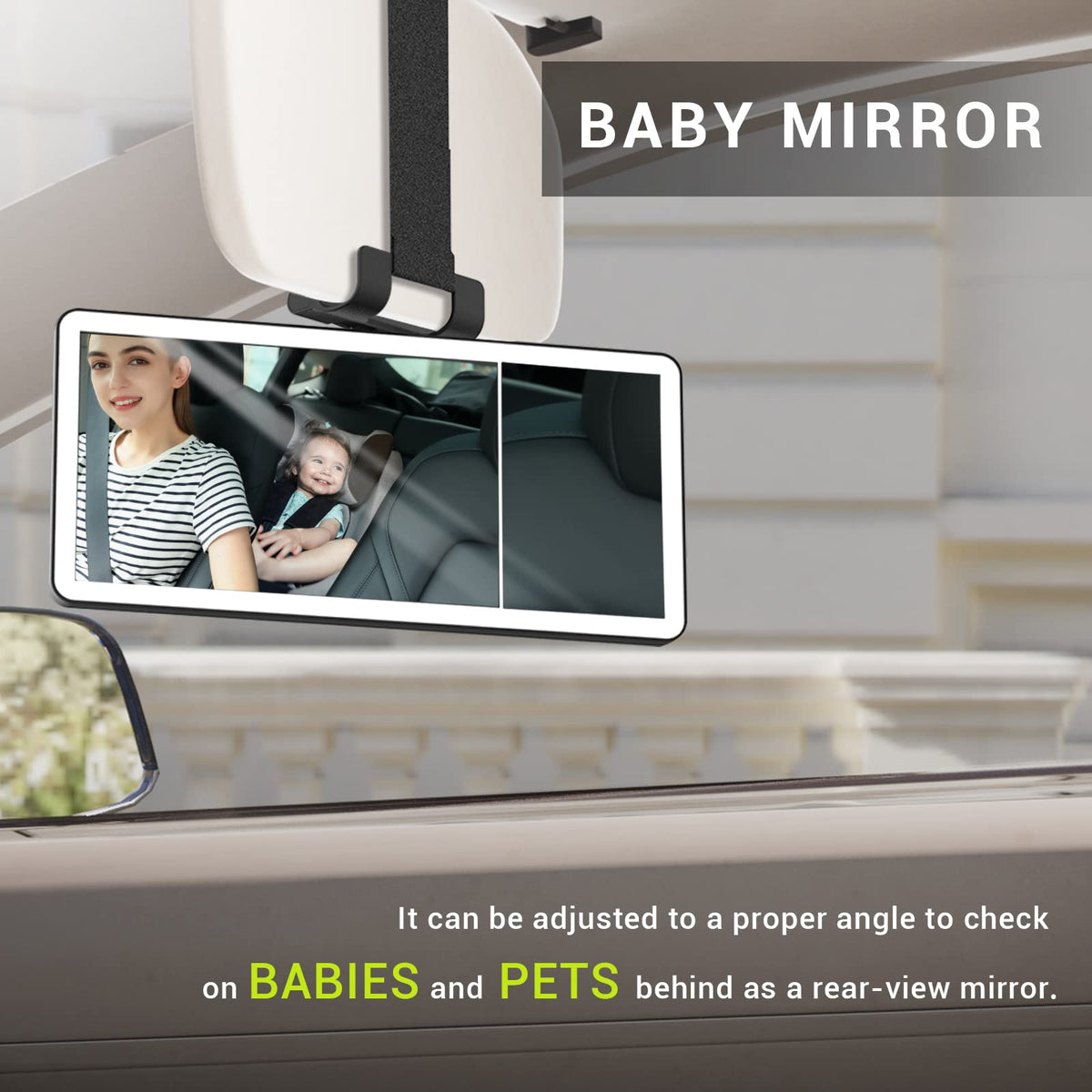 Q: Can I use this mirror to check on my baby or pet while driving?A: Absolutely! The rear-view baby car mirror allows you to check on your baby or pet in the back seat. Additionally, it features triple magnification to help you see visual blind spots clearly, ensuring a safer driving experience.