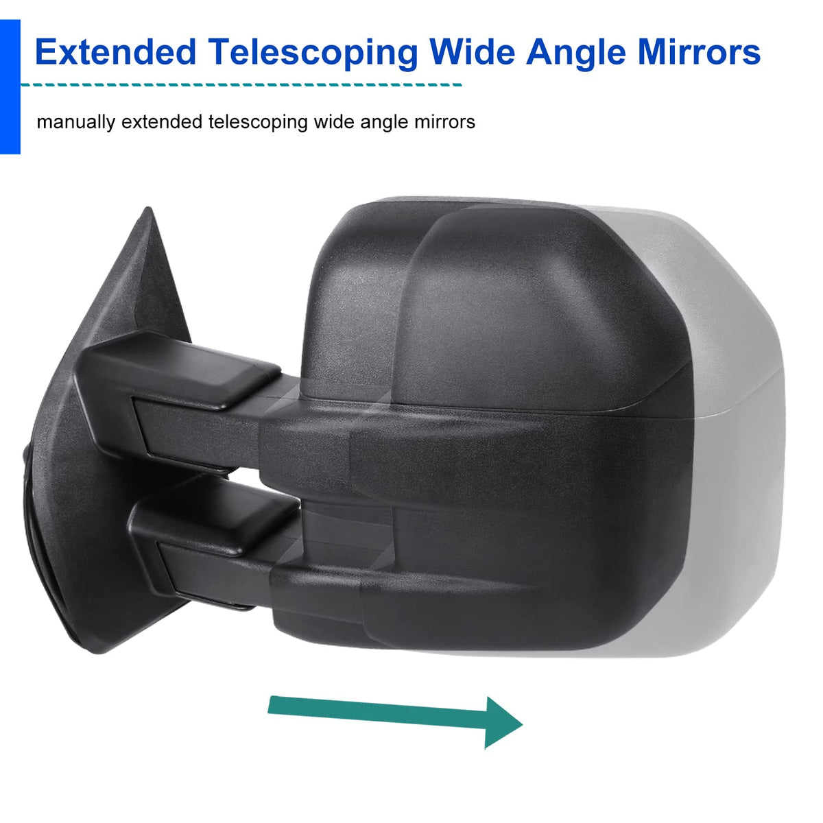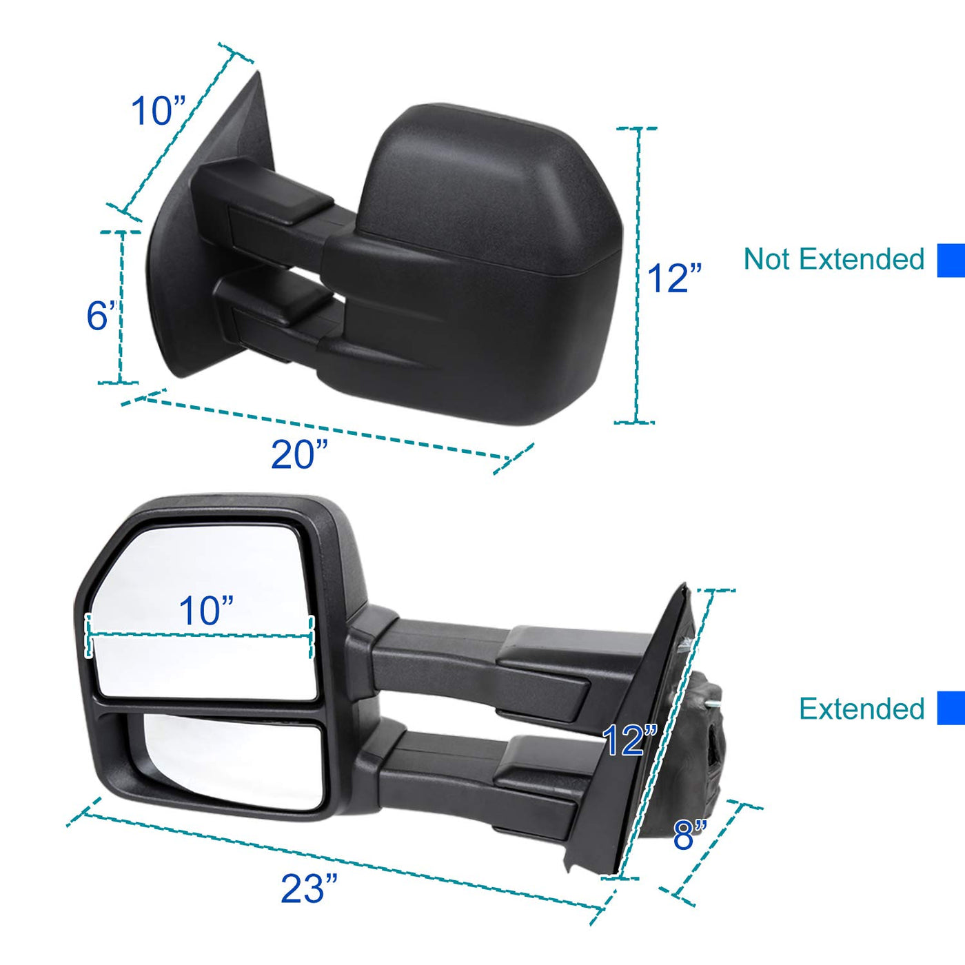Spec-D Tuning Black Manual Extendable Tow Towing Mirrors Compatible with 2015-2020 Ford F150