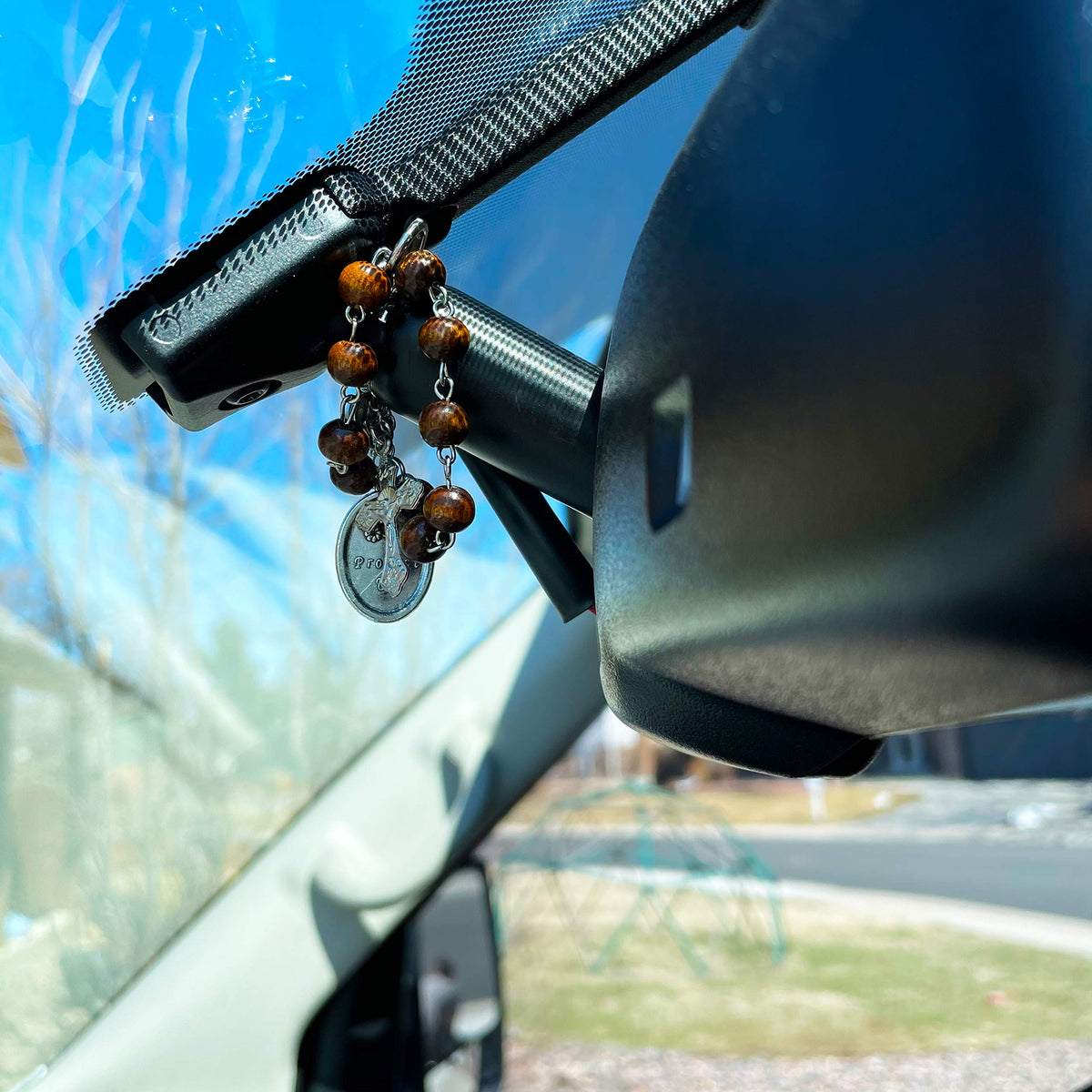 St Christopher Medal For Car - Car Rosary For Rearview Mirror - St. Christopher Keychain Rosary For Car Rearview Mirror