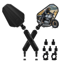 Q: What features enhance the functionality of this motorcycle mirror?A: This motorcycle mirror features a unique design with a larger ball joint for better stability, a streamlined aesthetic for visual appeal, and 360-degree adjustability for optimal viewing angles, making it functional and stylish for any rider.