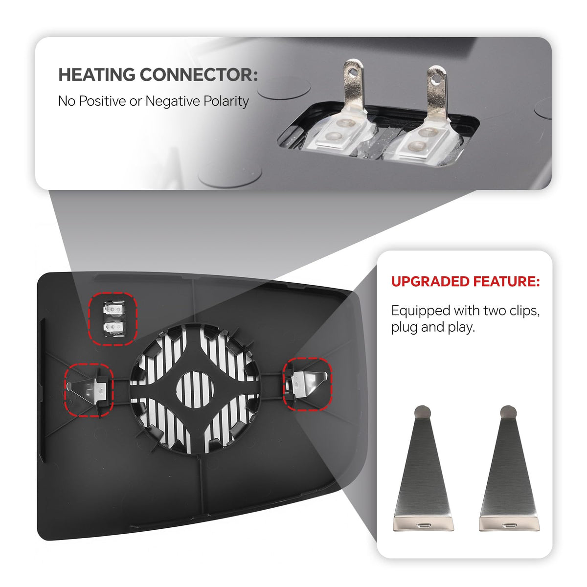 Q: Does this mirror have a heating function?A: Yes, this mirror features a heating function that enhances visibility in cold weather conditions, making it safer for driving.