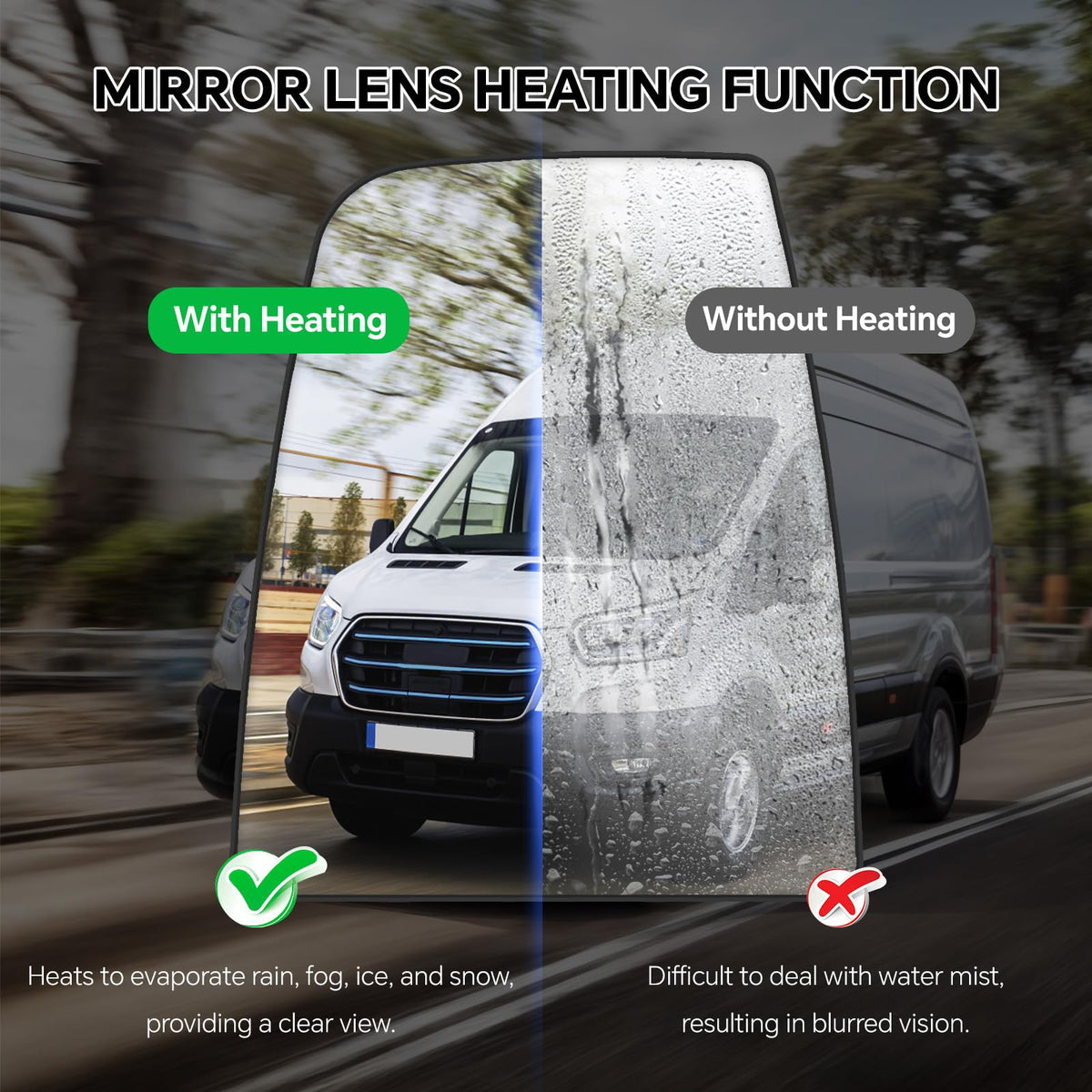 Top-Max Driver Left Side Upper Rearview Convex Heated Mirror Glass With Rear Holder Fit Ford Transit 150 250 350 From 2015 To 20