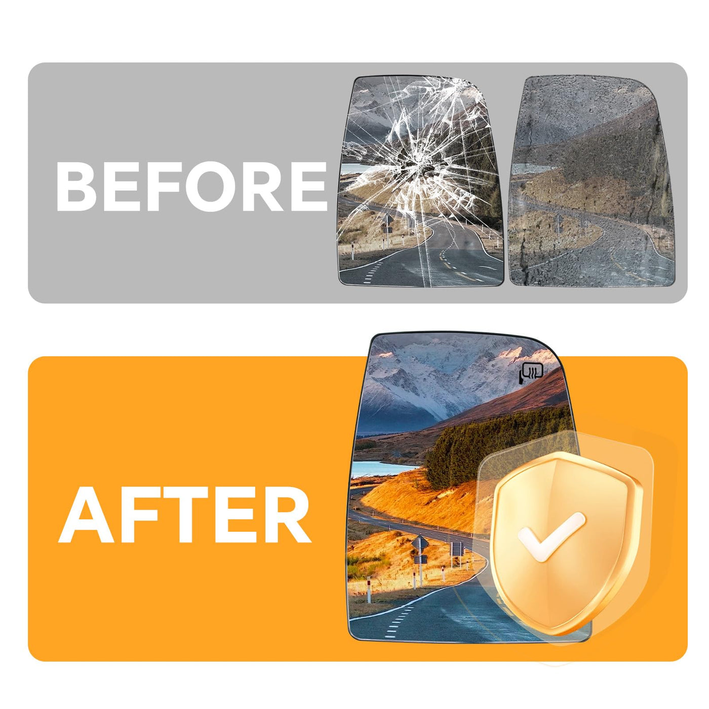 Q: How do I install the new mirror glass?A: Installation is straightforward: remove the old mirror glass, attach the provided 2 metal clips to the new mirror, connect the wiring, and press the new mirror glass into place. You can also reuse clips from the original mirror if needed.