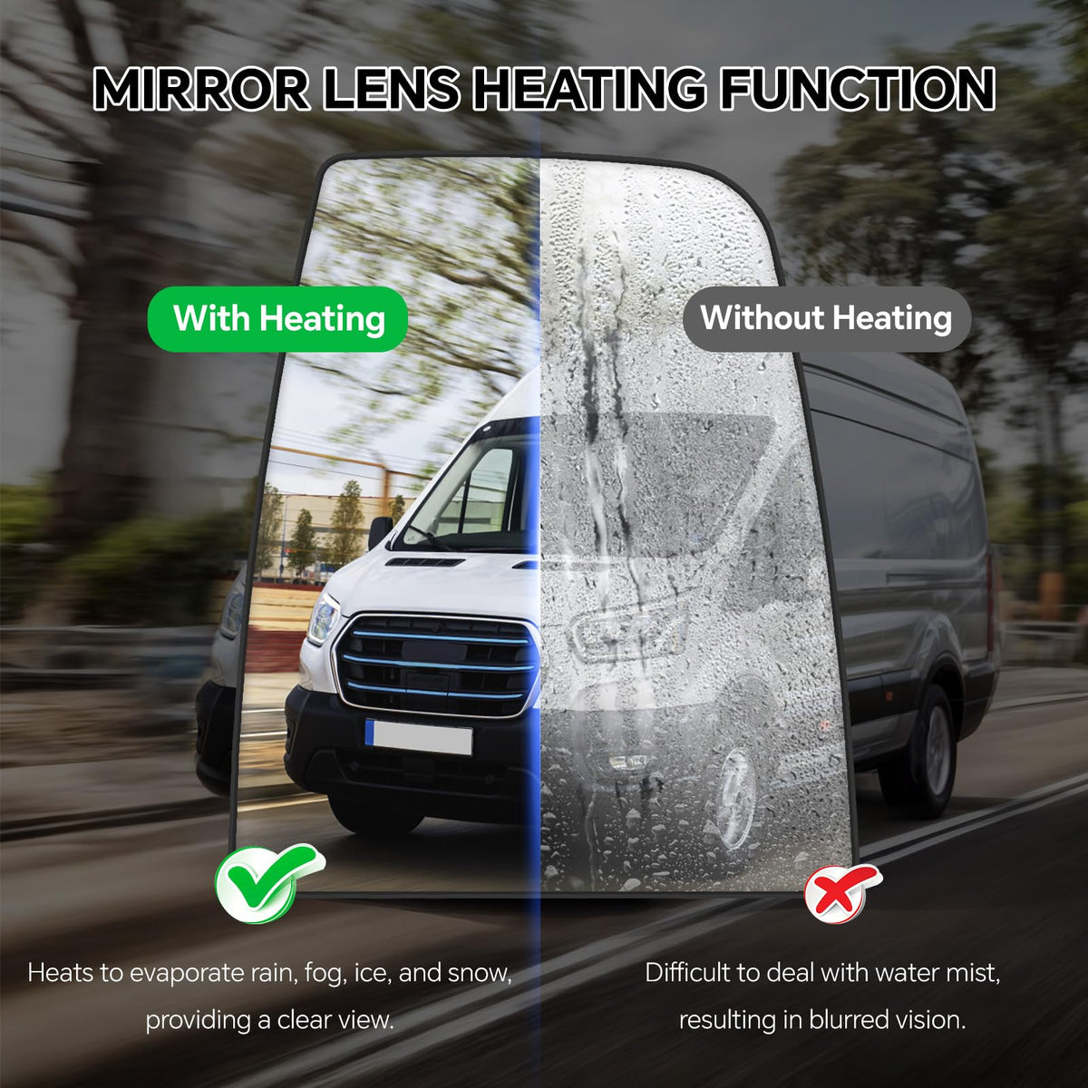 Top-Max Passenger Right Side Upper Mirror Glass Replacement For Ford Transit 150 250 350 Mk8 2014-2023 With Heated And 2 Metal C