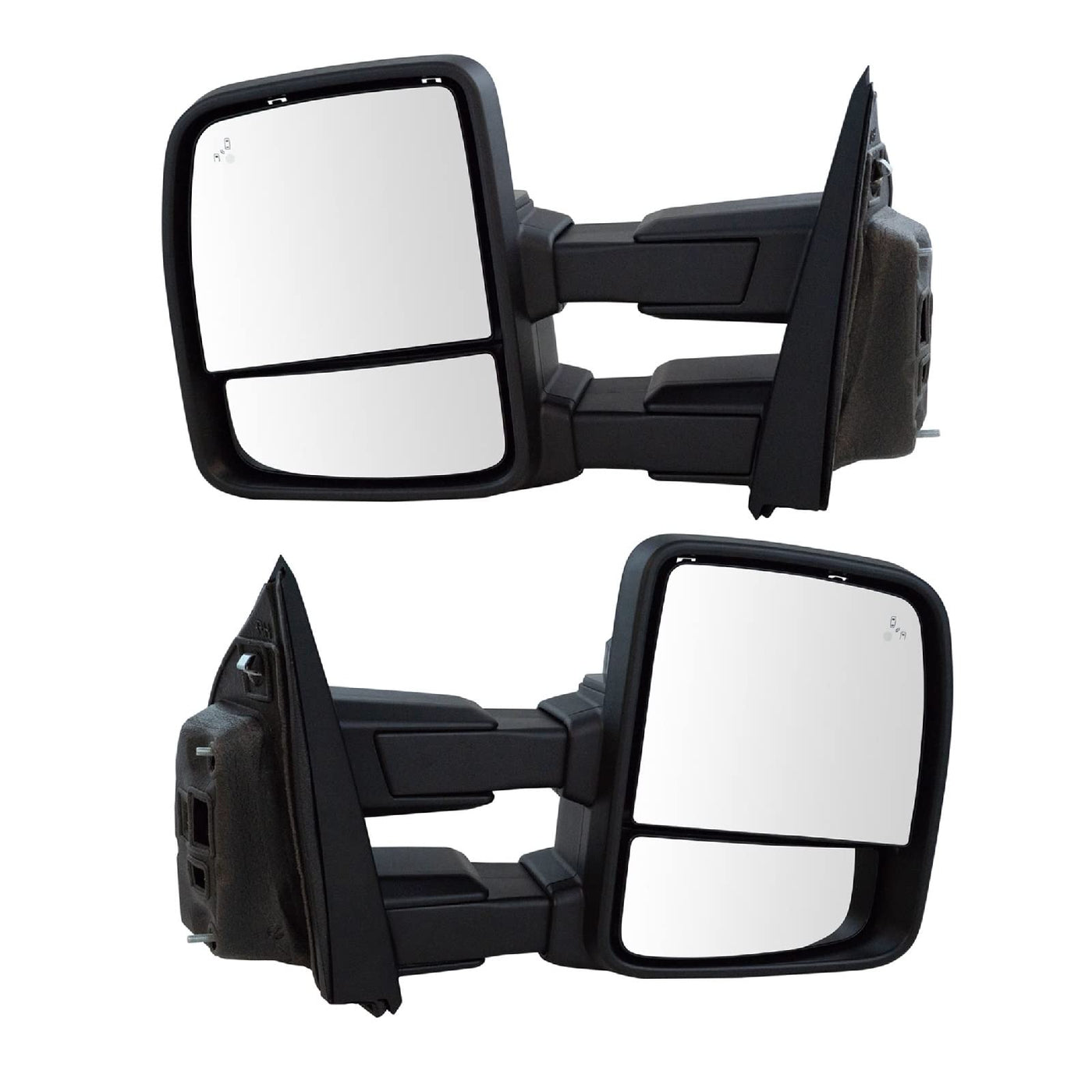 3 Piece Power Textured Black Rounded Mirror Head Towing Mirror SetKit Includes(1) Driver Side Mirror(1) Passenger Side MirrorFitmentCompatible with: 2015-17 Ford F150 Truck without Temperature Sensor in Passenger Side MirrorCompatible with: 2018 Ford F150 Truck without Temperature Sensor in Passenger Side Mirror To 2/25/18 Production DateProduct AttributesCover Color: BlackHousing Turn Signal Indicator Lens Color: ClearAdjustment Type: ElectricFold Away Mechanism: ManualExtendable Mechanism: ManualAspherical Glass: NoMirror Turn Signal Indicator: NoMaterial: PlasticCover Finish: TexturedMounting Hardware Included: YesIntegrated Puddle Light: YesHousing Turn Signal Indicator: YesHeated: YesBlind Spot Indicator: YesQuantity: 3 PieceTowing Mirrors Features & Benefits: Features and Benefits SetIncluded Accessory: Includes wiring installation kit for models without pre-wired pins for spotlight, marker light, and puddle lightTemperature Sensor Included: NoManual Remote Control: NoMirror Head Style: Rounded Mirror HeadMirror Color / Finish: Textured BlackMirror Type: TowingReference NumbersFord: FL3Z17682EA, FL3Z17682EB, FL3Z17682EC, FL3Z17682FA, FL3Z17682FB, FL3Z17682FC, FL3Z17683EA, FL3Z17683EB, FL3Z17683FA, FL3Z17683FB, FL3Z17683FC, FL3Z17683FDPartslink Numbering System: FO1320525, FO1320526, FO1321525, FO1321526