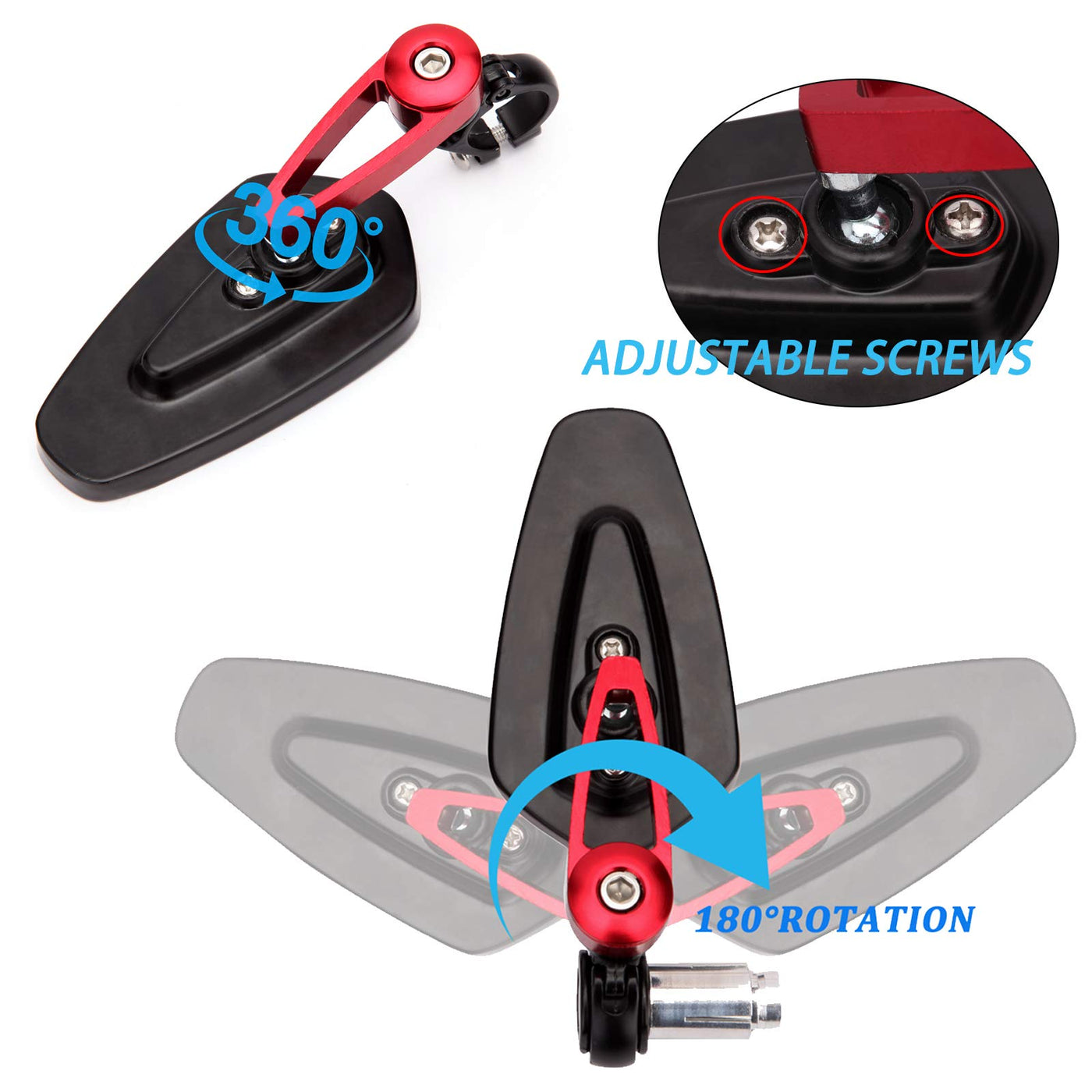 Q: Can I adjust the angle of these motorcycle mirrors?A: Yes, the Universal Red Motorcycle Mirrors feature an adjustable mirror angle, allowing you to tilt them up and down as well as left and right for optimal visibility.