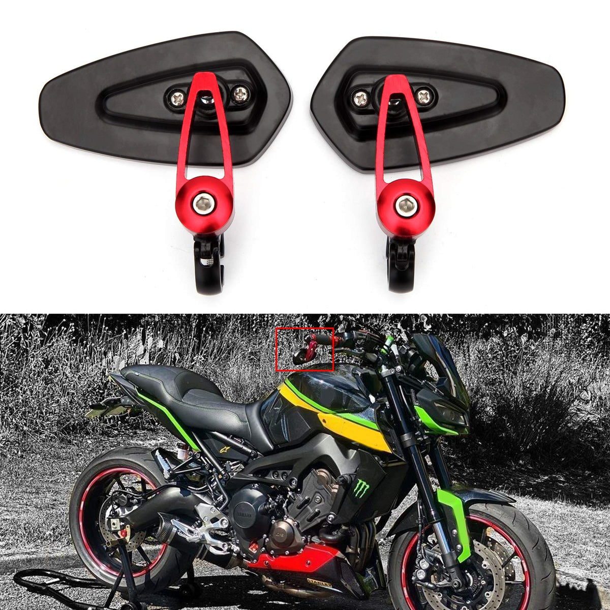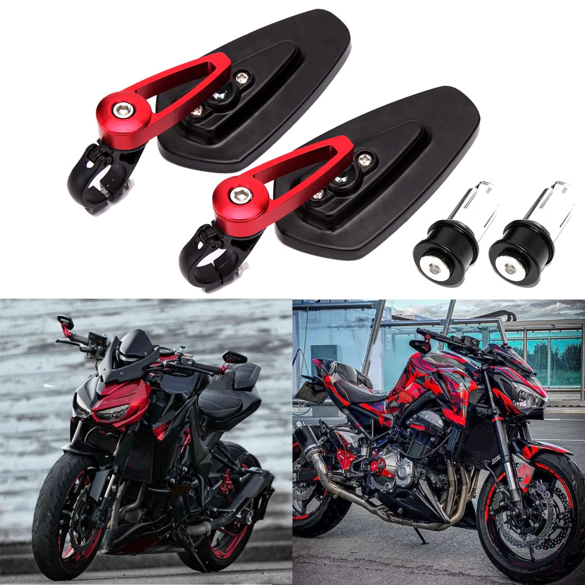 Q: What motorcycles are compatible with the Universal Red Motorcycle Bar End Side Rear View Mirrors?A: These mirrors are designed to fit all motorcycles, street bikes, sports bikes, choppers, and cruisers with 7/8" standard handlebars. They are suitable for most brands including Suzuki, Honda, Kawasaki, Yamaha, Ducati, Aprilia, Vespa, Kymco, and more.
