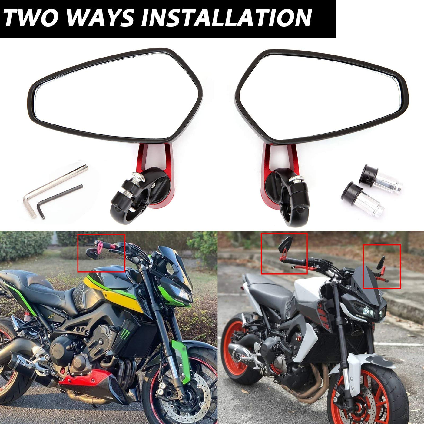 Q: How do I install these mirrors on my motorcycle?A: The mirrors come with a 7/8" bar end insert bushing for easy installation or can be directly clamped on. Ensure your handlebars are compatible before installation.