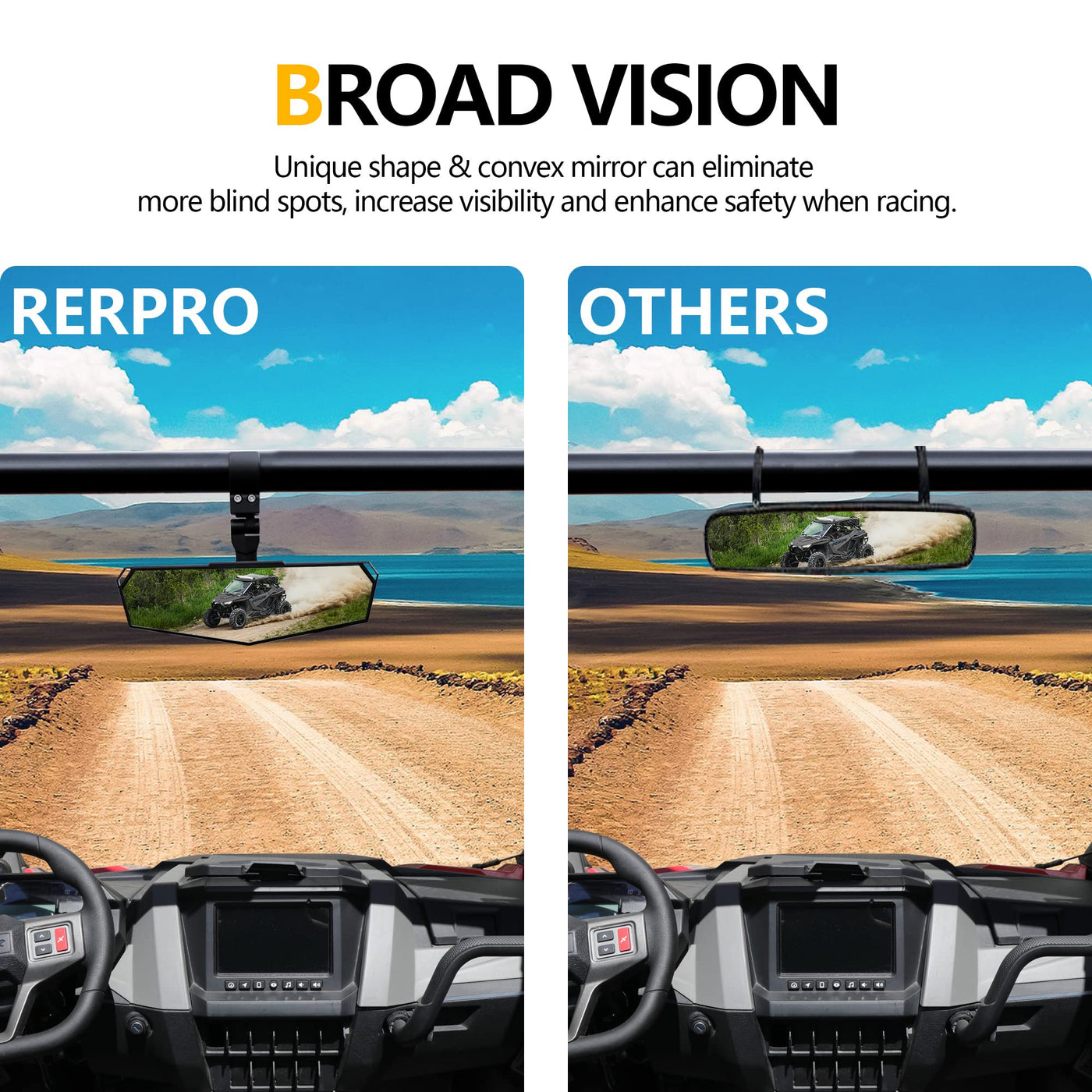 Widen Vision The Rzr Center Rearview Mirror With A Unique Shape & Convex Mirror Has A Wide-Angle Which Can Avoid Most Of The Blind Spots, Increase The Visible Range To Improve Your Security.