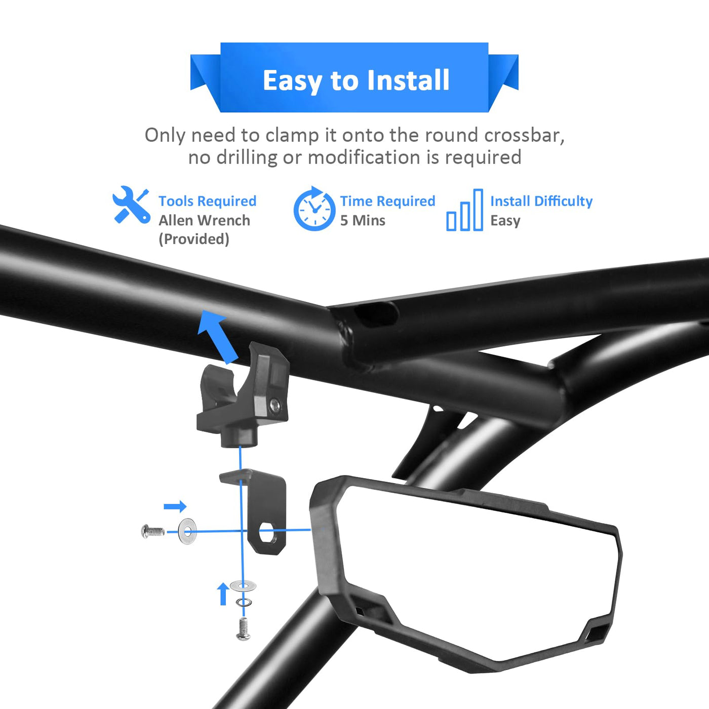 Wsays Utv Center Rear View Mirror Adjustable Angle Fits 1.5-2' Round Roll Bar Rear Center Convex Mirror Compatible With Rzr Maverick Talon Pionner Krx Mule Yxz Wolverine Zforce