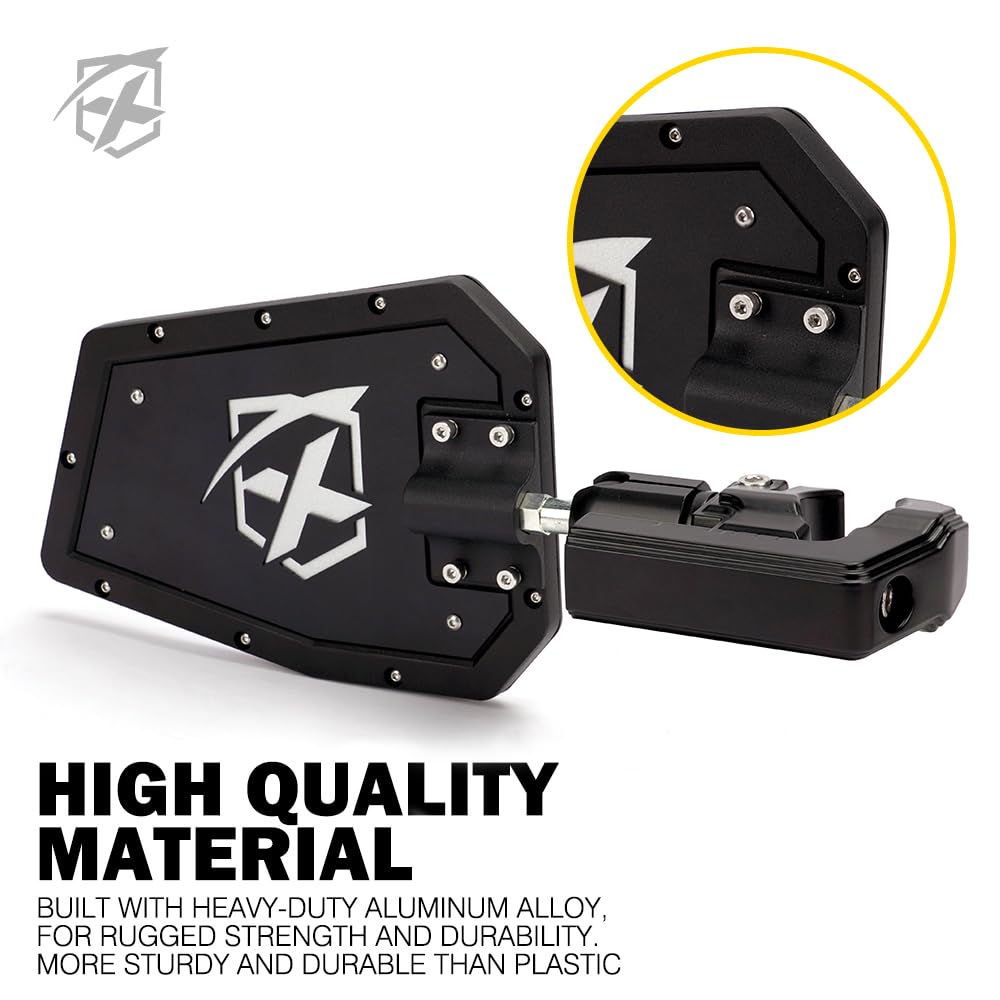 Q: Are these side mirrors suitable for off-road use?A: Yes, these side mirrors are crafted from heavy-duty aluminum alloy, ensuring exceptional durability and impact resistance, making them ideal for off-road adventures.