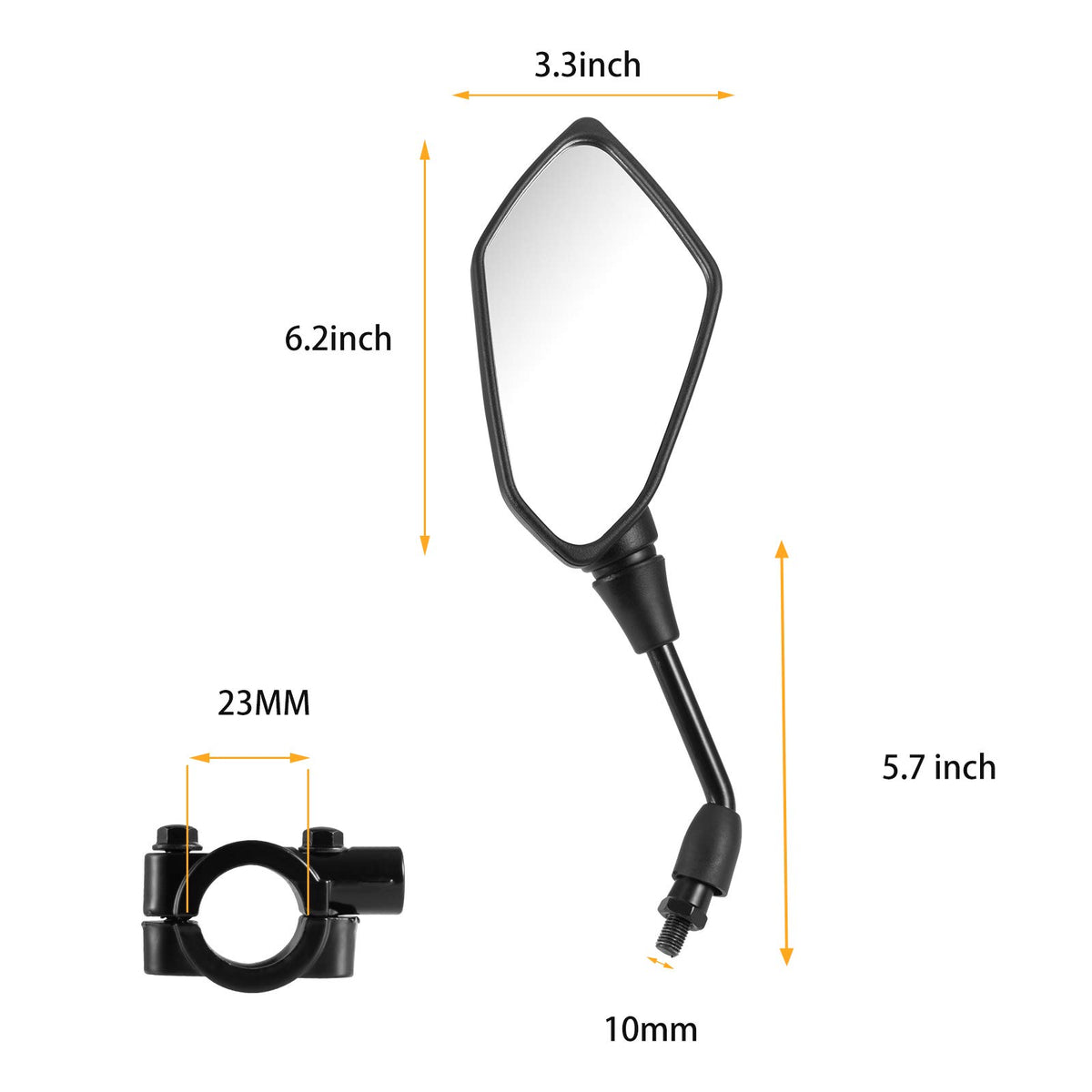 Q: What are the dimensions of the XYZCTEM rear view mirrors?A: The XYZCTEM rear view mirrors measure 6.2 inches long and 3.3 inches wide, with a 5.7-inch long stem, providing ample visibility for riders. This design enhances the field of vision, allowing for safer riding.