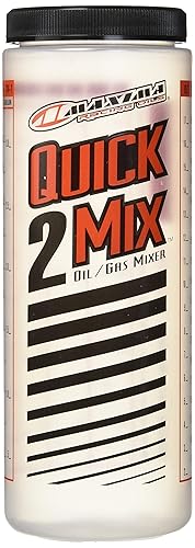 Q: How do I use the Maxima Quick 2 Mix bottle for mixing fuel?A: To use the Maxima Quick 2 Mix bottle, simply select the desired oil ratio and the amount of gas you wish to mix. Fill the oil to the mark corresponding to your gas measurement, for example, fill to the 4.0 gallon mark for a 32:1 ratio with 4 gallons of gas.
