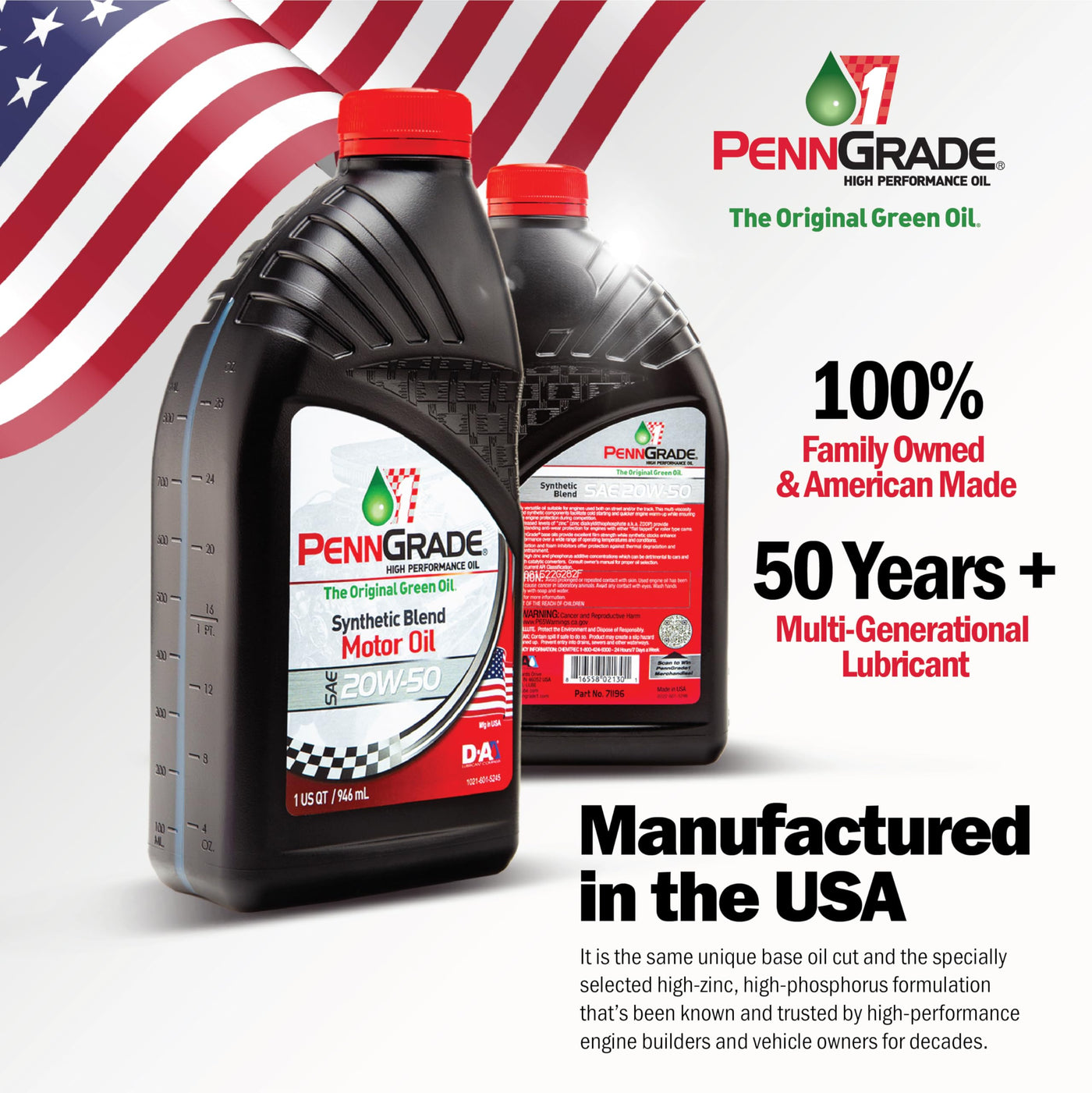 Penn Grade 1, 71196, Synthetic Blend High Performance Oil Sae 20W-50, 1 Quart